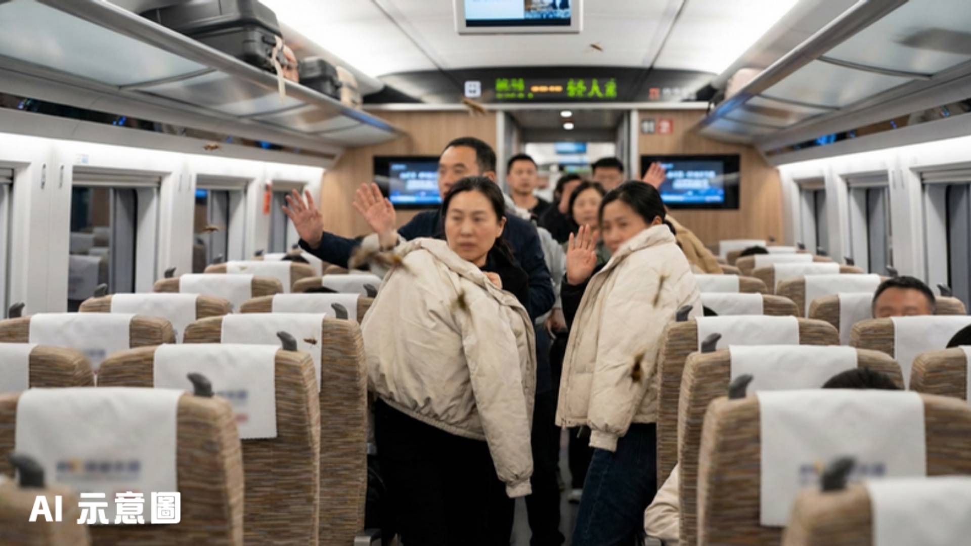 事發在3月31日下午2時05分,由香港西九龍站開出的G386次列車,在駛往上海虹橋的途中,車廂內突然湧現大量蚊子。根據網上瘋傳的影片及報道,原本寧靜的車廂瞬間變成戰場,全車乘客不約而同地揮動手臂、拿起雜誌或徒手拍打,試圖驅趕在密閉空間內瘋狂飛舞的蚊群。由於高鐵車廂是全封閉設計,乘客們根本無處可逃,只能在座位上被動抵禦,整個長達數小時的車程變成了一場痛苦的煎熬。