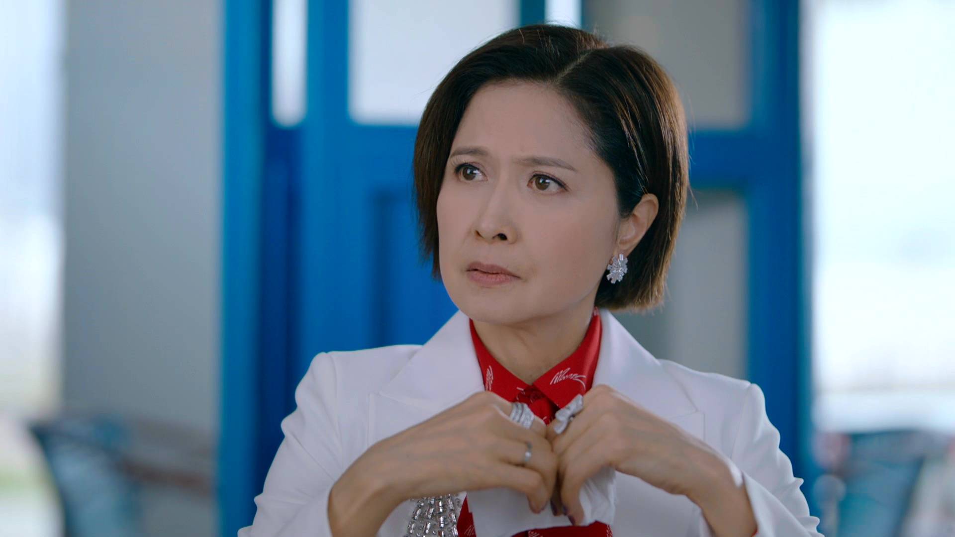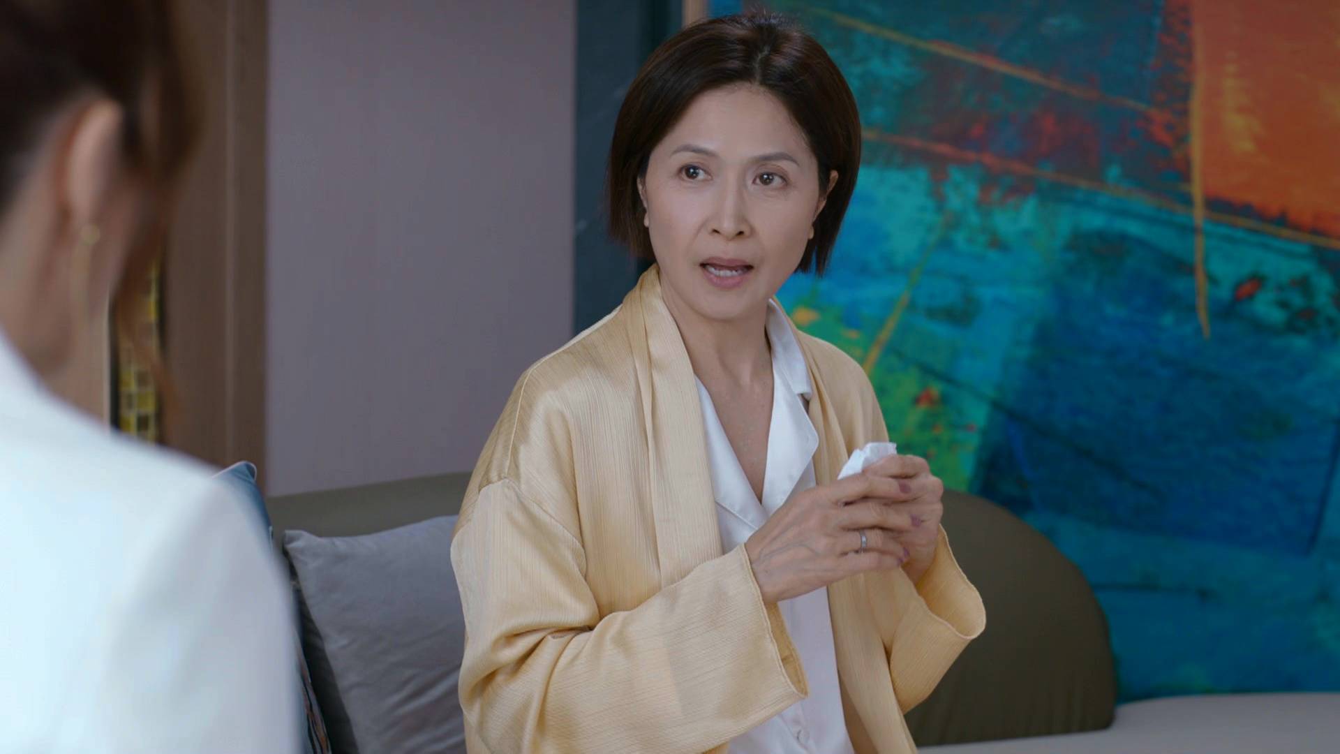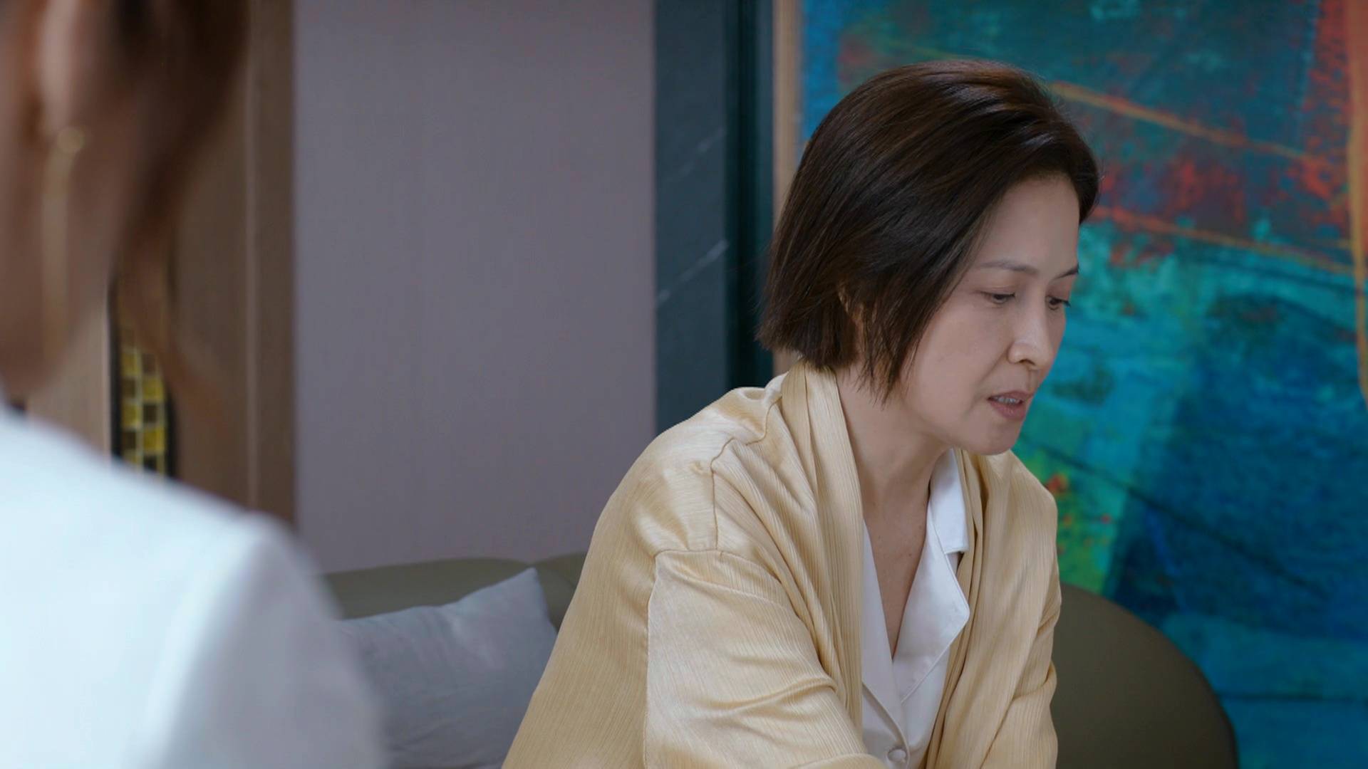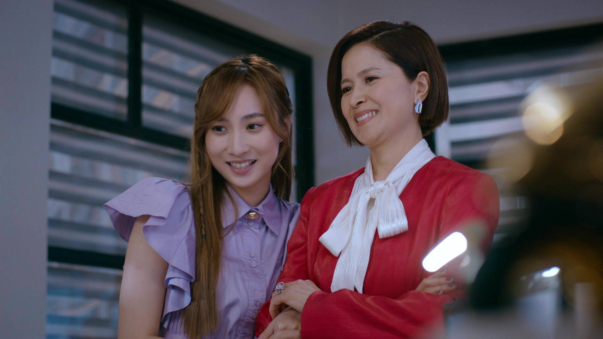 除了霸氣外露的一面,邵美琪在另一場戲中亦展現出截然不同的情感層次。當她聆聽張曦雯訴說母親慘死的不幸過去時,她收起了女強人的氣場,隱隱流露出心痛和理解的表情,與平日親切慈愛或睿智的形象截然不同。這種細膩的情感轉換,充分展示了她深厚的演技功底,能夠在不同場景之間游刃有餘,將角色的多面性演繹得淋漓盡致,難怪能獲得監製如此高的評價。