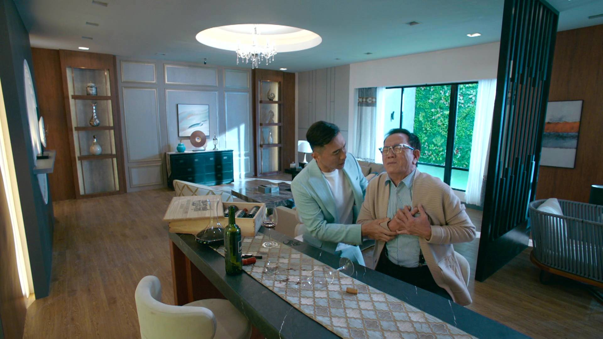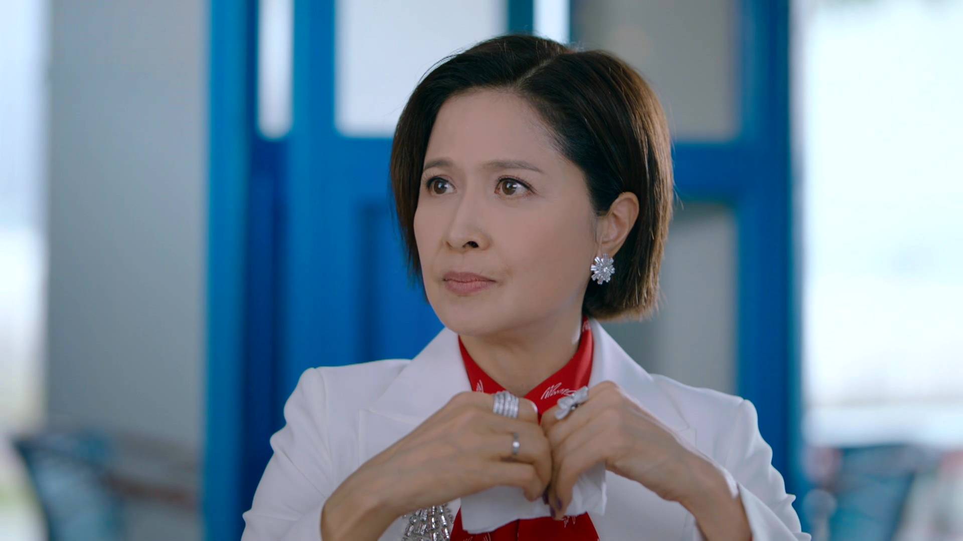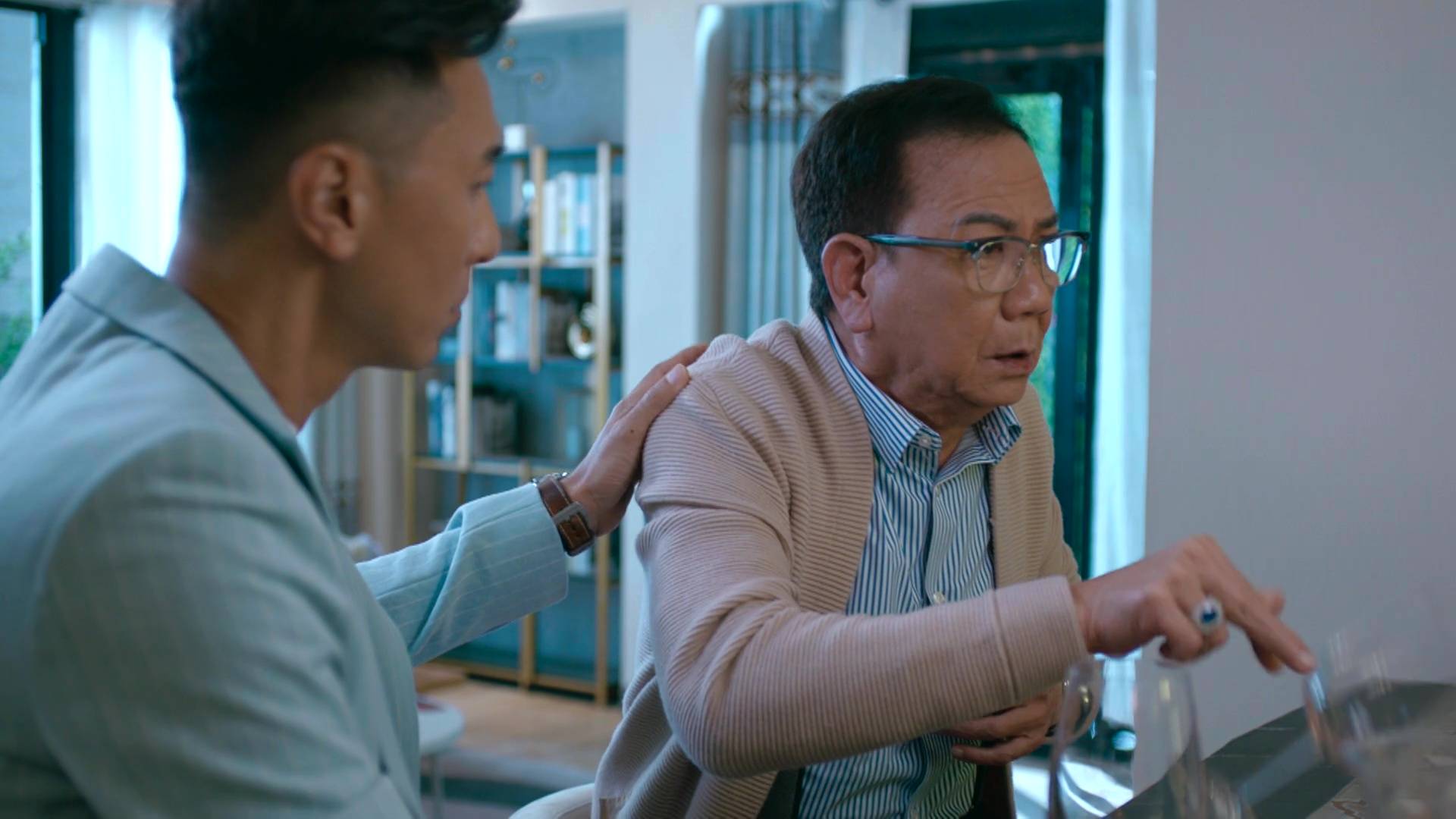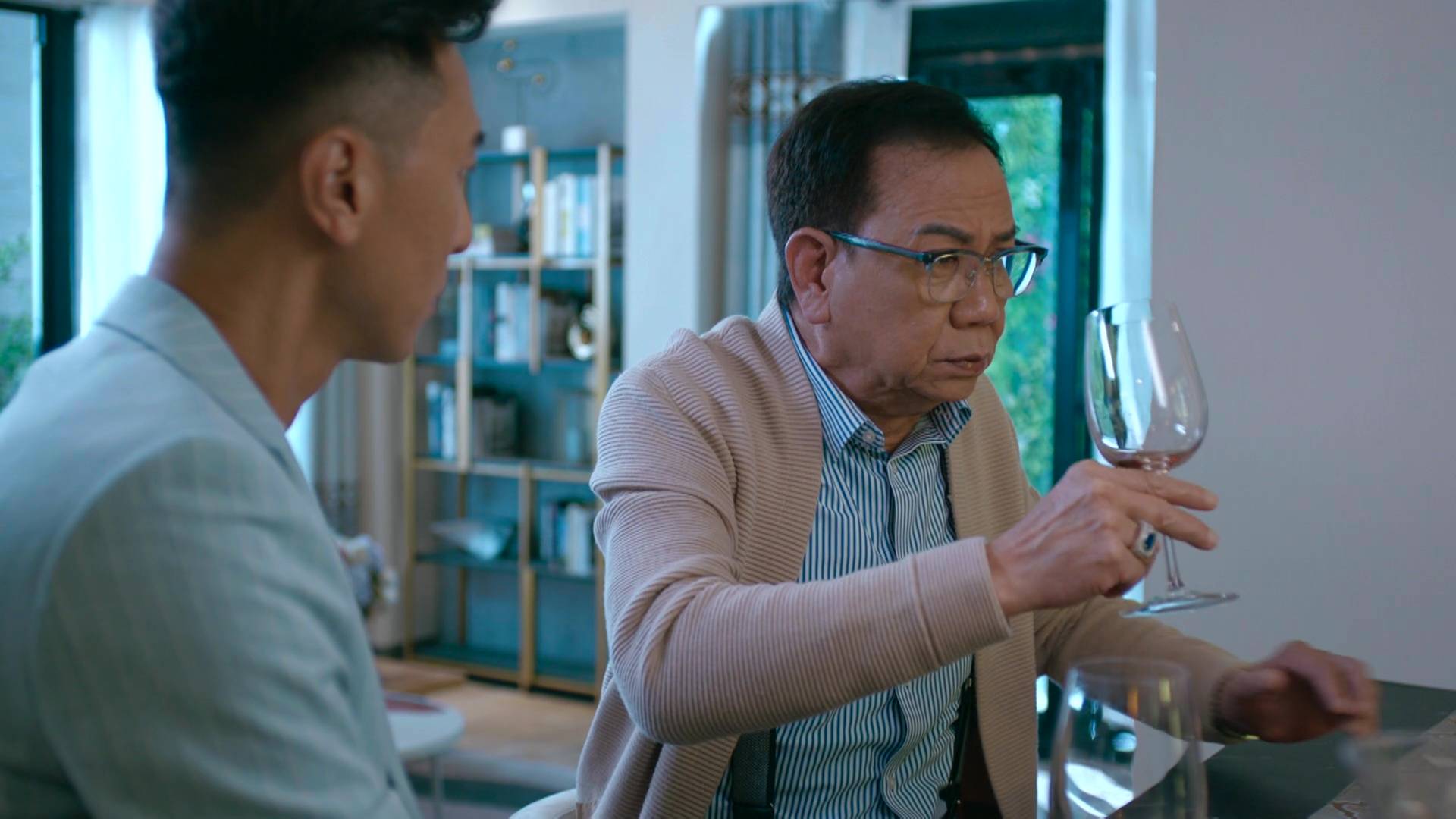 除了霸氣外露的一面,邵美琪在另一場戲中亦展現出截然不同的情感層次。當她聆聽張曦雯訴說母親慘死的不幸過去時,她收起了女強人的氣場,隱隱流露出心痛和理解的表情,與平日親切慈愛或睿智的形象截然不同。這種細膩的情感轉換,充分展示了她深厚的演技功底,能夠在不同場景之間游刃有餘,將角色的多面性演繹得淋漓盡致,難怪能獲得監製如此高的評價。