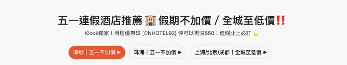 | CNHOTEL92 | 全線內地酒店92折,最高減 HK$50|推廣期:即日起至2026年5月3日11:59PM |