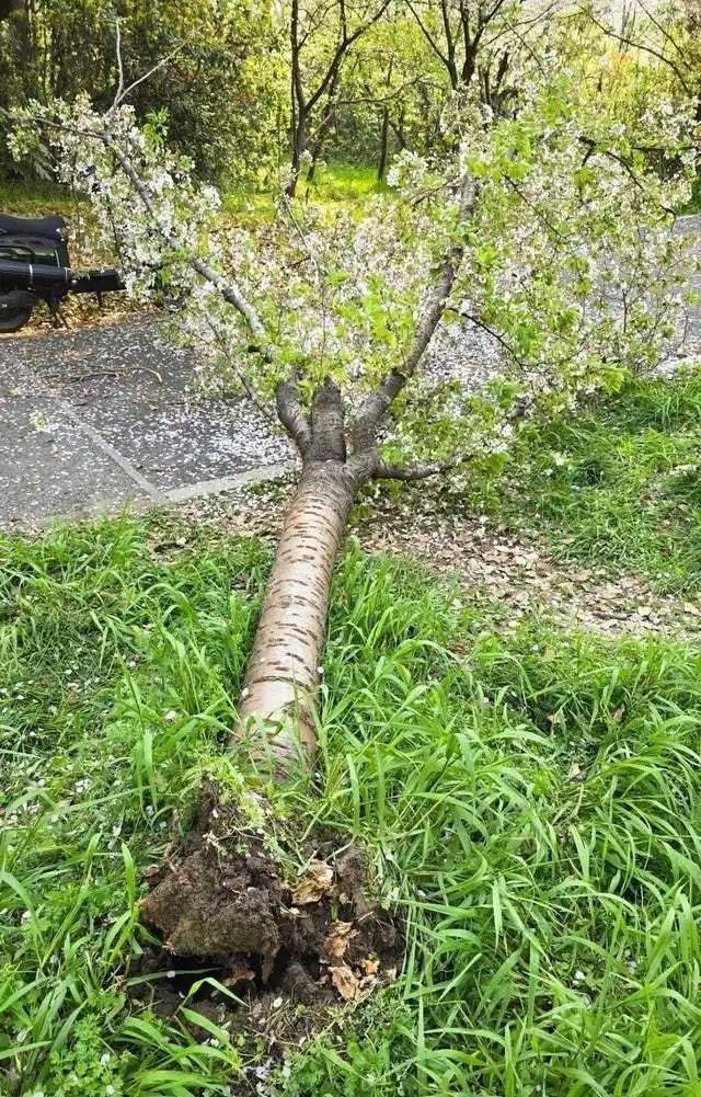 爬樹打卡惹禍 櫻花老樹瞬間連根拔起