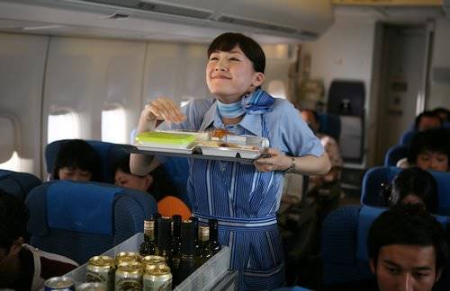 大媽坐飛機 狂點餐飲 事主當日正向乘客派飲料