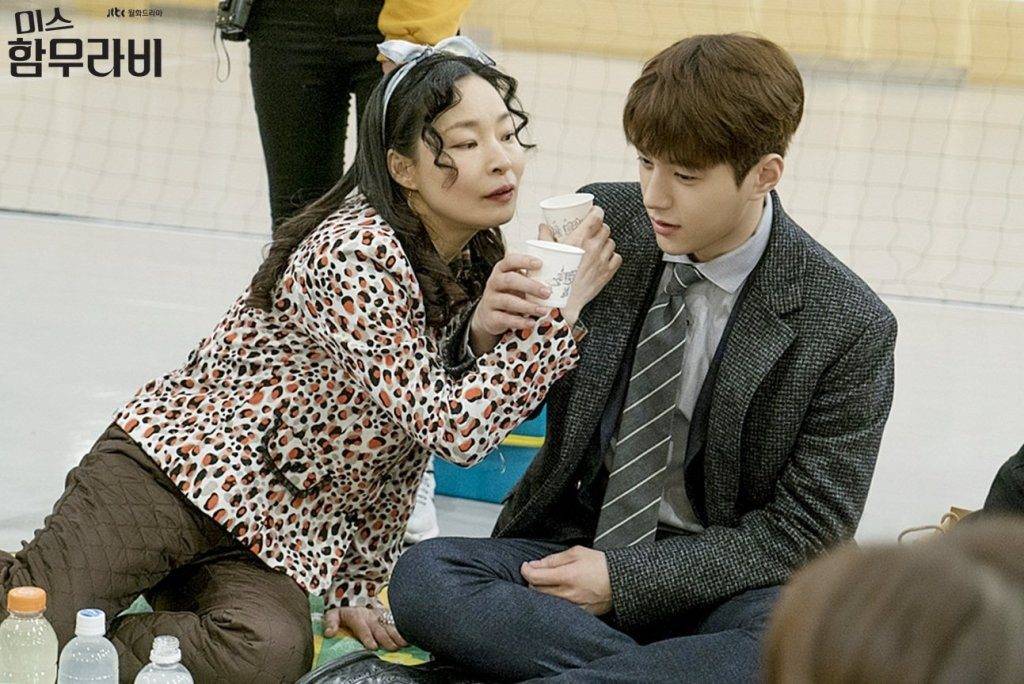 大媽竟起身並一手搶過男乘客的咖啡(圖片來源:《漢謨拉比小姐》劇照)