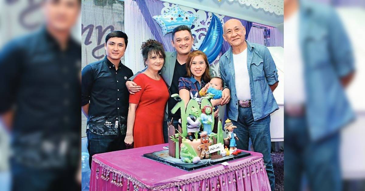 鼎爺與施明雖然離婚多年,但他一直照顧前妻及李泳豪、李泳漢兩兄弟,李泳漢兒子百日宴,全家開心影合照。(圖片來源:新傳媒資料室)