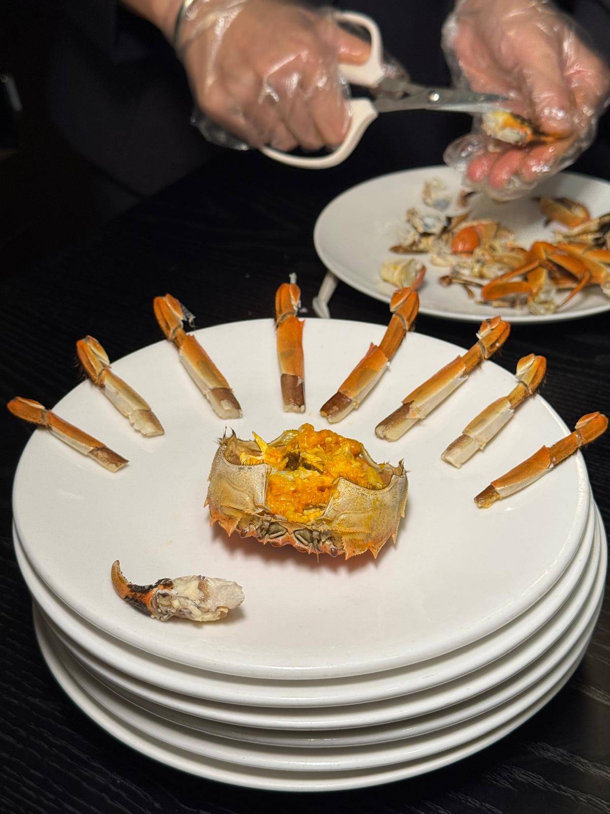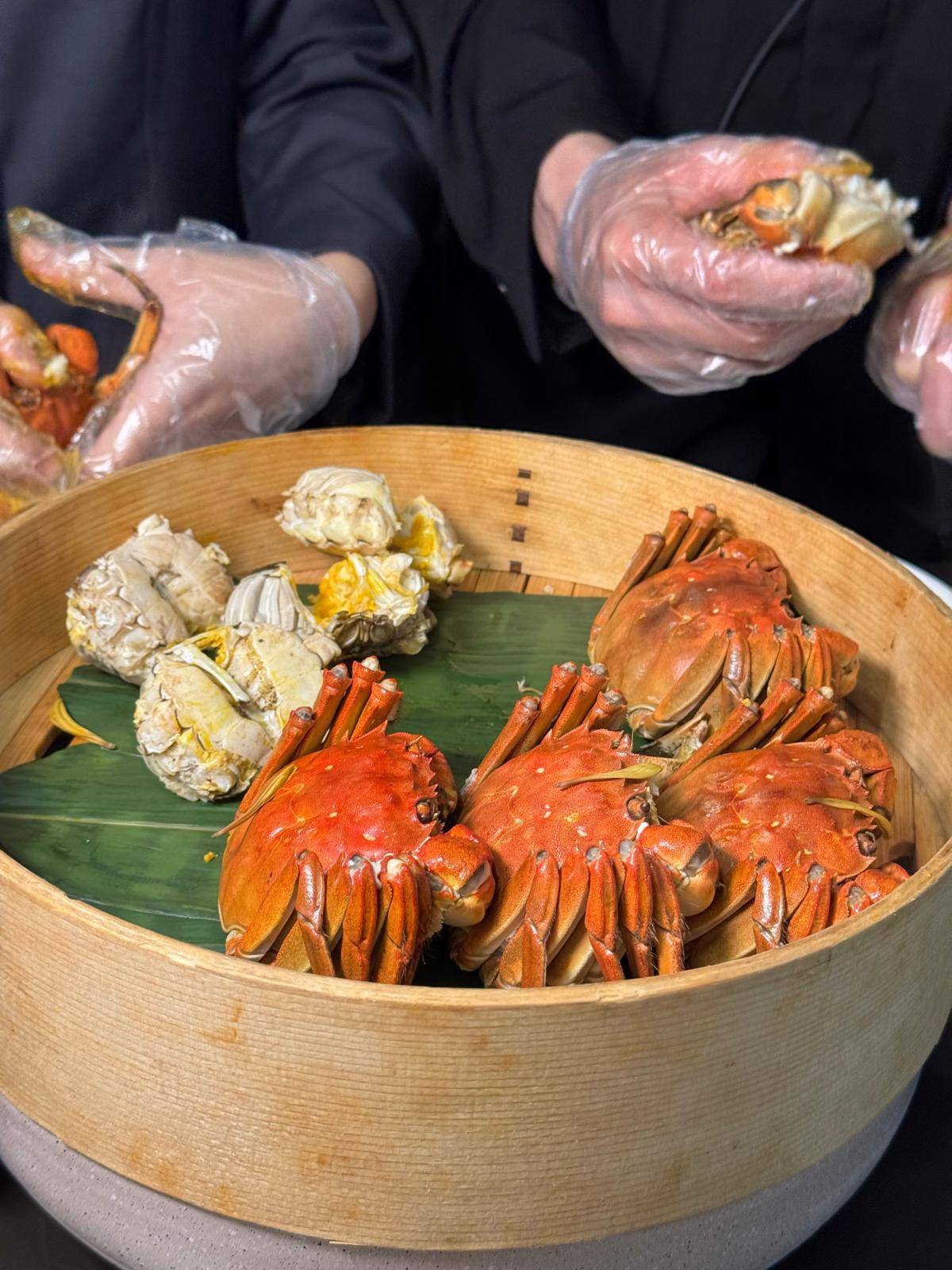 Day 1 成隆行(米芝蓮一星):品嚐陽澄湖大閘蟹料理,如蟹粉蝦仁、清蒸大閘蟹,店員幫拆蟹殼。