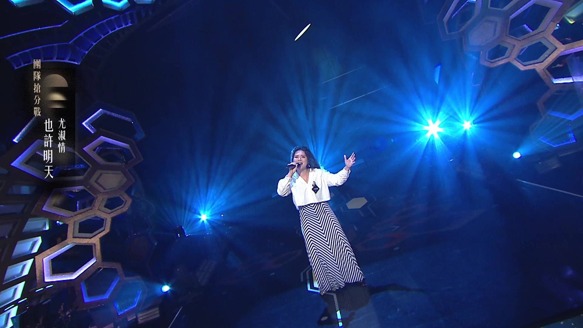 在本周日(19日)晚播出的《中年好聲音4》「團隊搶分戰」下半場,尤淑情隊與吳亦偉隊進行一對一PK。輪到大熱選手尤淑情上陣,她選唱張惠妹的《也許明天》,歌曲難度極高。尤淑情憑著澎湃又充滿感情的歌聲,完美駕馭歌曲,每當她飆高音時,台下評審張佳添都睇到肉緊萬分,更忍不住跟著大嗌兼舉手指向上,完全沉醉在她的表演之中,場面震撼!張佳添之後更搞笑地叫另一位評審海兒嘗試挑剔尤淑情的唱功,可見他對其表現極度滿意。