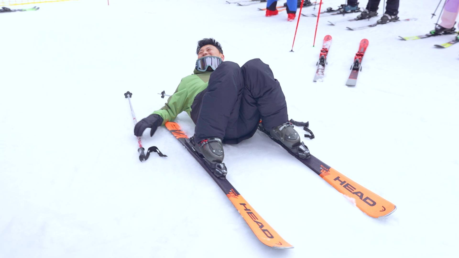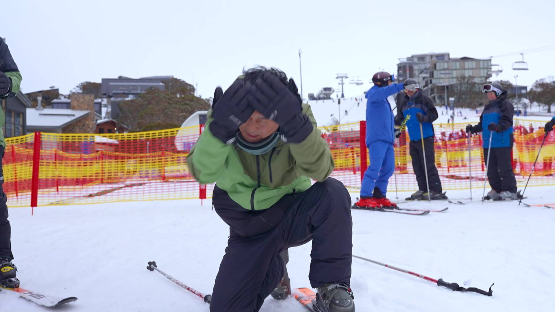 曹永廉新手滑雪頻頻跌倒勁狼狽