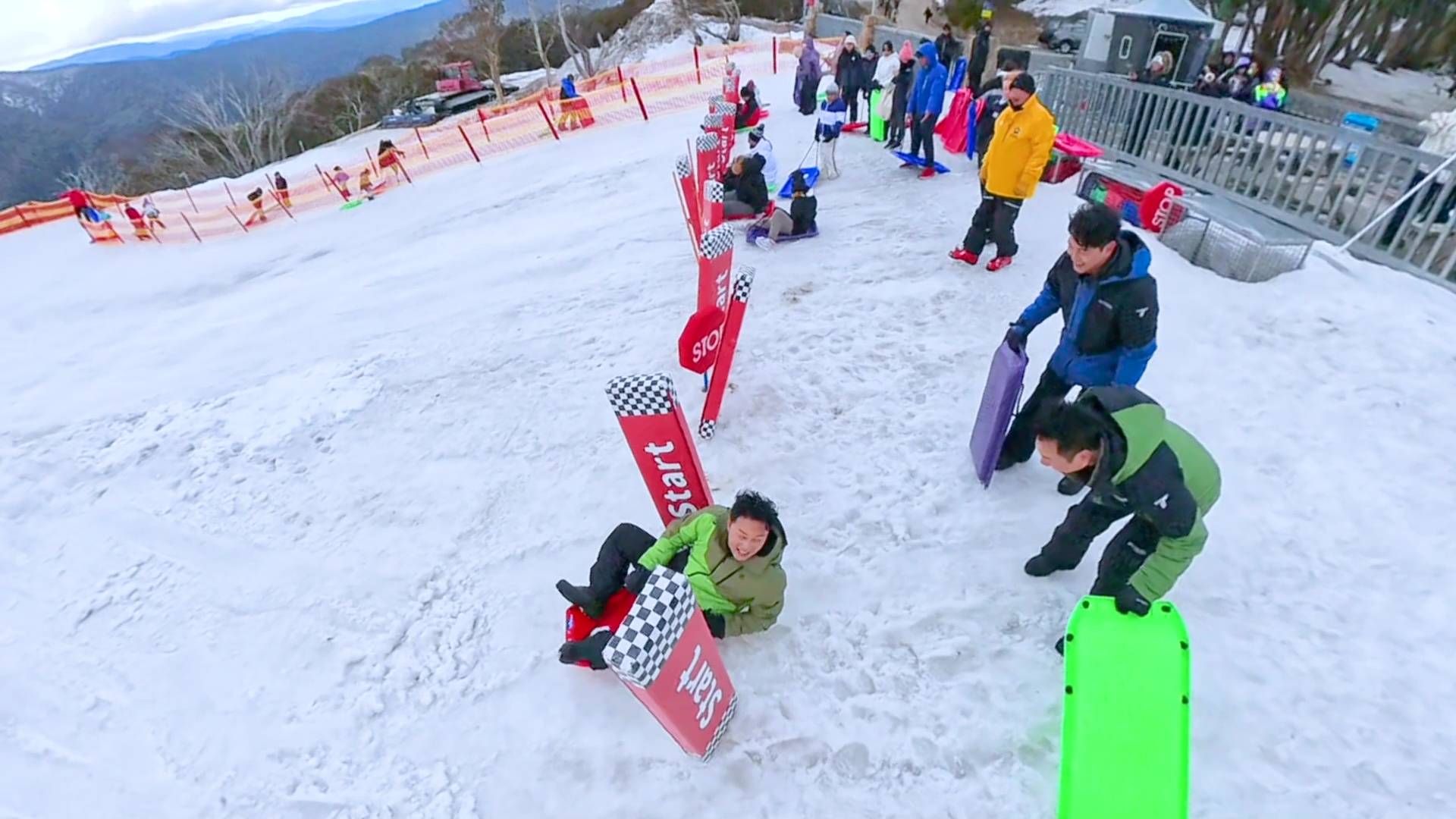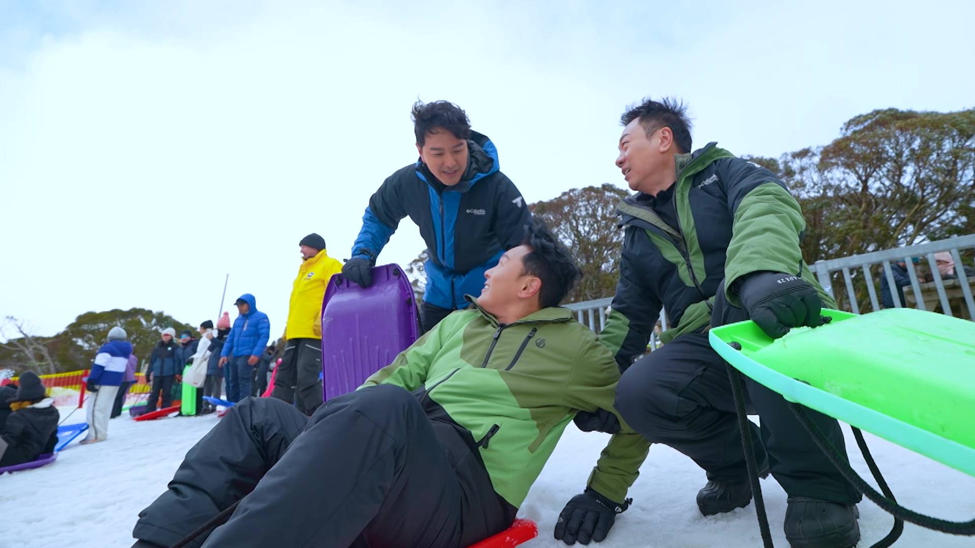 滑雪過後,三子轉戰更好玩的滑雪兜。可憐的曹永廉再次成為被整蠱的對象,在準備出發時,被蕭正楠從後偷偷推了一把,結果再度失去平衡跌倒,滑稽場面讓兄弟們笑作一團。雖然阿廉全程被整蠱,但他毫無怨言,反而樂在其中,這種打打鬧鬧的相處方式,正正體現了他們之間深厚的兄弟情,旅途充滿歡樂!