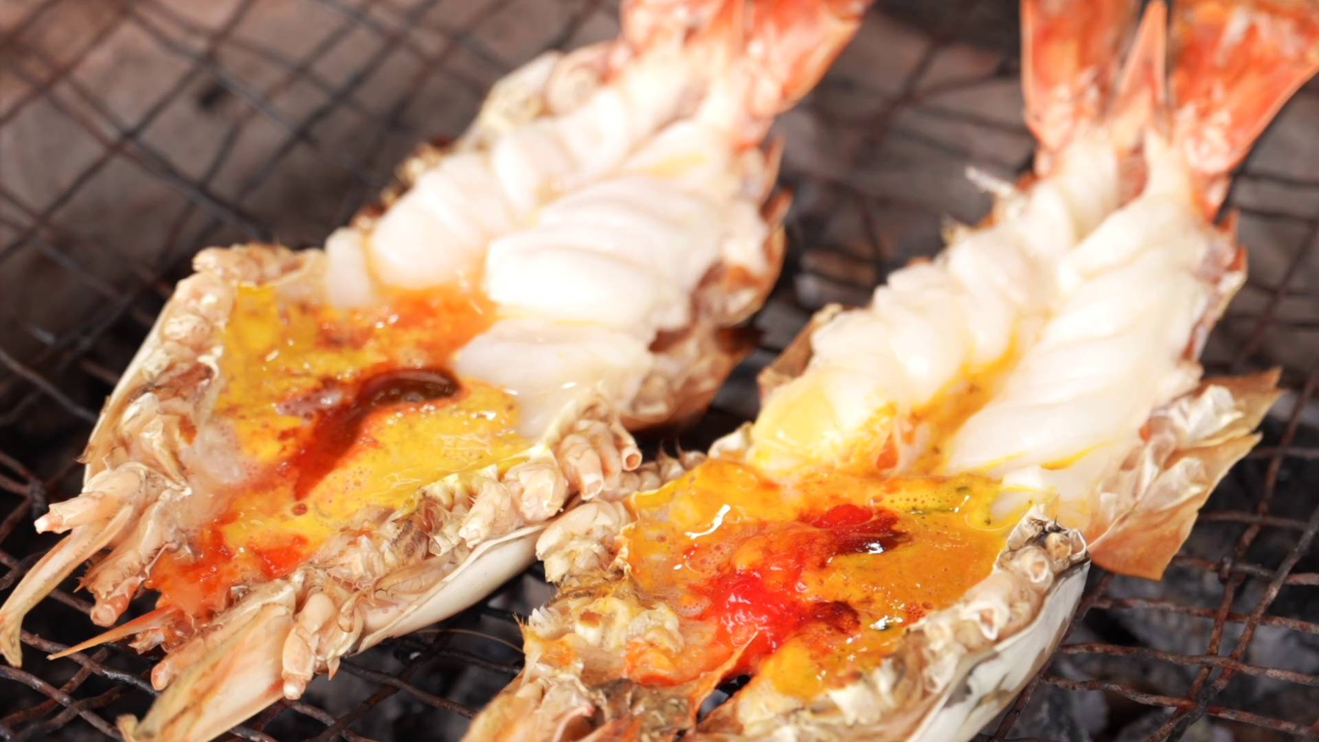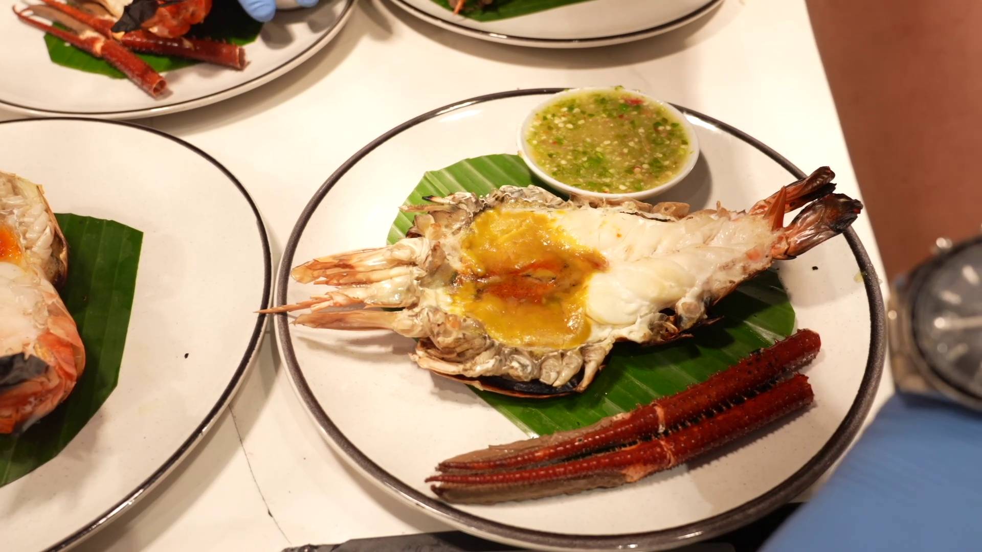 除了驚險的動物體驗,美食環節同樣吸引!Roger特意帶意猶未盡的波波到當地有名的「公跑一條街」大擦燒蝦。Roger解釋,「公」即是蝦,「跑」就是燒的意思。波波實行燒蝦放題,將大城府河蝦、大頭蝦一網打盡,當中更有粗如她前臂的巨型河蝦,連工包料都只是1,200泰幣(約300港元),非常抵食!波波亦大讚他們入住酒店的國際級數海鮮自助餐,有Live band聽之餘,空間感十足,絕對是頂級享受。