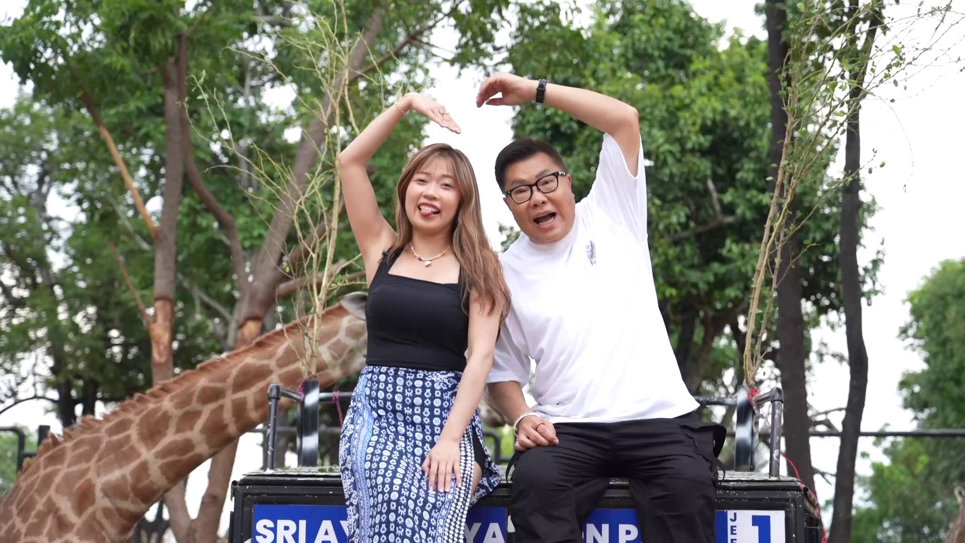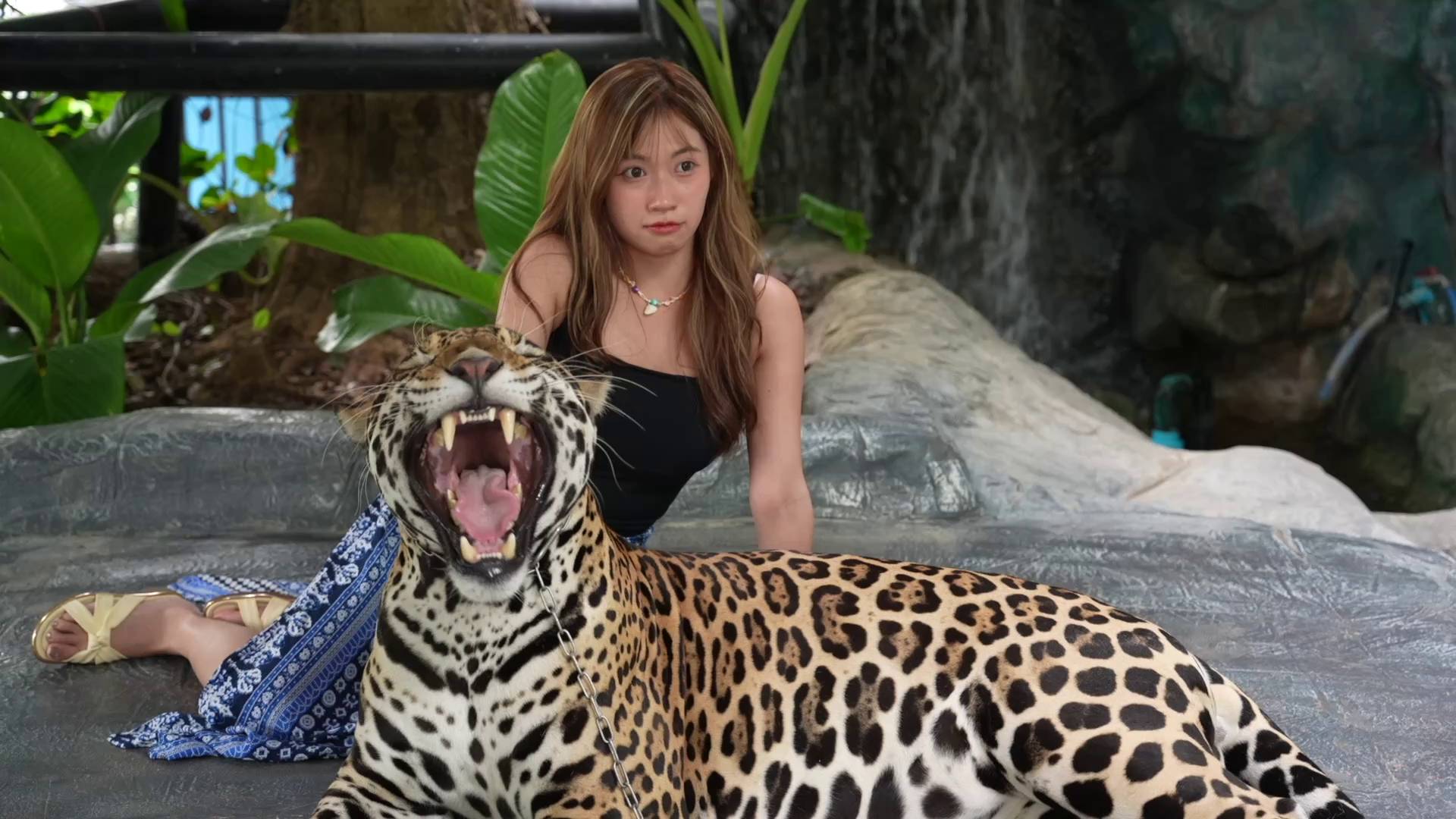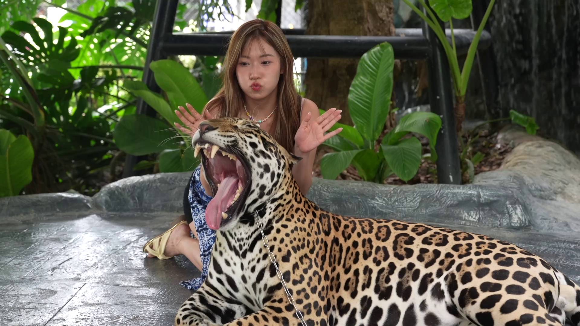 在被長頸鹿圍咬之前,波波黃婧靈已經歷了一場膽量大考驗!她竟然大膽挑戰與一隻成年的花豹合照。從畫面可見,波波一邊撫摸著身旁的花豹,一邊戰戰兢兢,神情極度緊張。她事後心有餘悸地說:「睇手機就睇得多呢個(豹打呵欠)表情符號,真嘅都係第一次,我驚講嘢咁大聲會嚇親佢。」在場工作人員都為她捏一把汗,整個過程可謂驚險萬分,絕對是搵命搏!