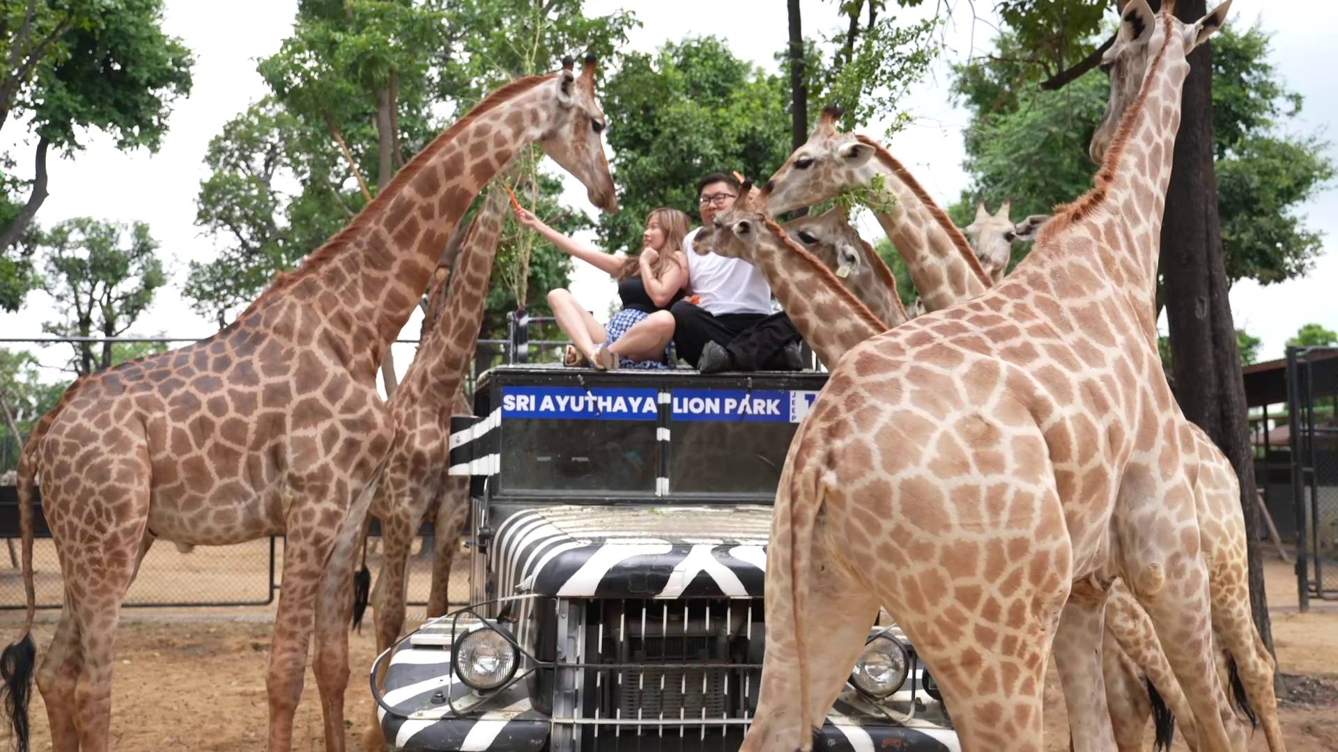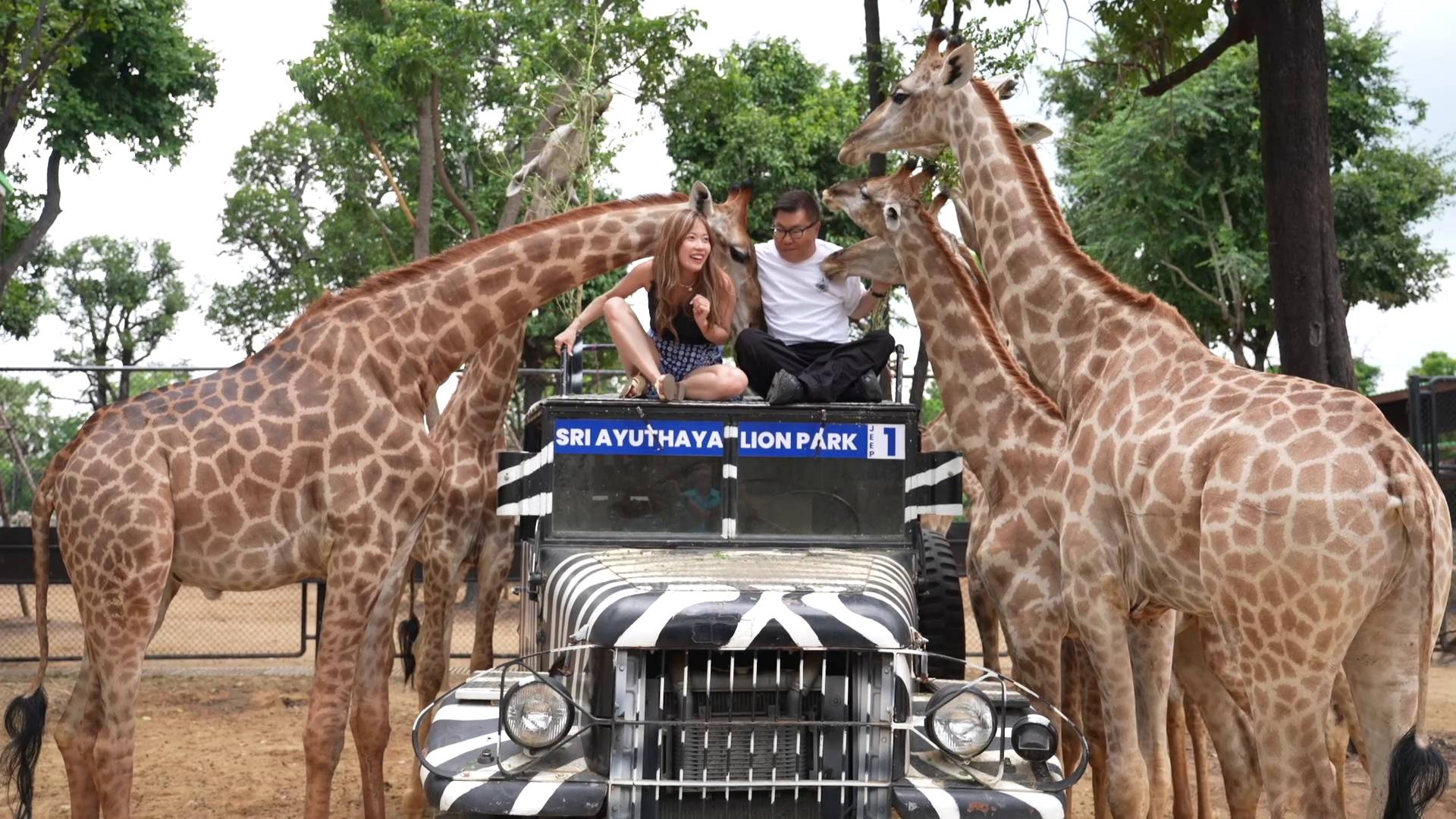 波波黃婧靈吉普車頂餵食 慘遭長頸鹿群圍咬