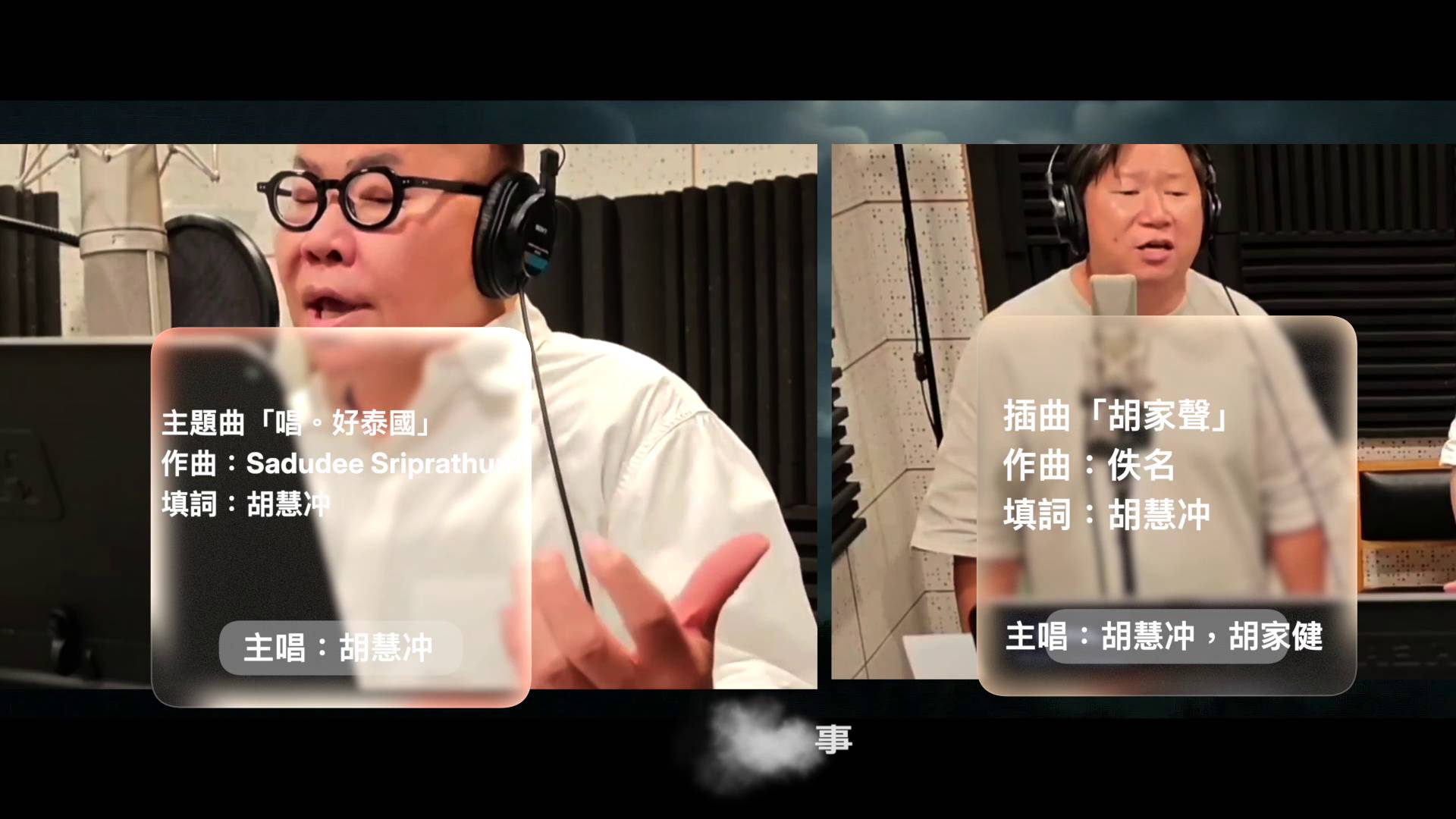 今輯《冲遊泰國 11》除了有波波黃婧靈加盟做主持,節目音樂亦有新驚喜。原來今輯的片尾插曲《胡家聲》,是由主持胡慧冲本人,夥拍《中年好聲音 3》的參賽者胡家健一同合唱。這個出人意表的跨界合作,相信會為旅遊節目粉絲及歌唱比賽的觀眾帶來全新火花,令人非常期待兩位「胡氏」唱將的化學作用,勢必掀起網上熱議。