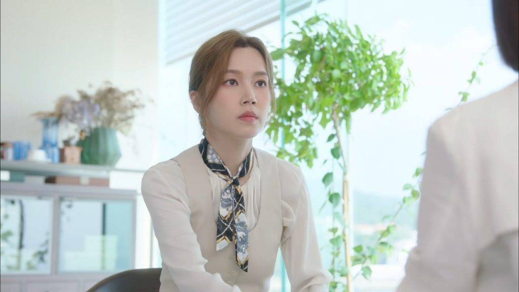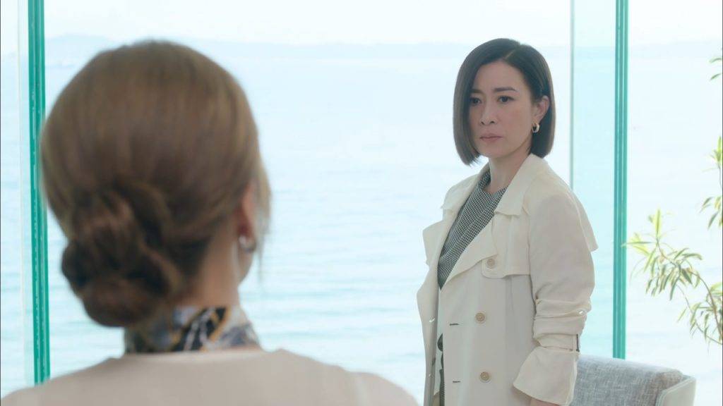 傅嘉莉女強人造型亦令人目不睱給,既有雪紡恤衫Look、亦有純白西裝裙Look,及紮髻黑色套裝專家證人Look,每個造型均滲發出強烈的女人味及知性美(圖片來源:TVB)