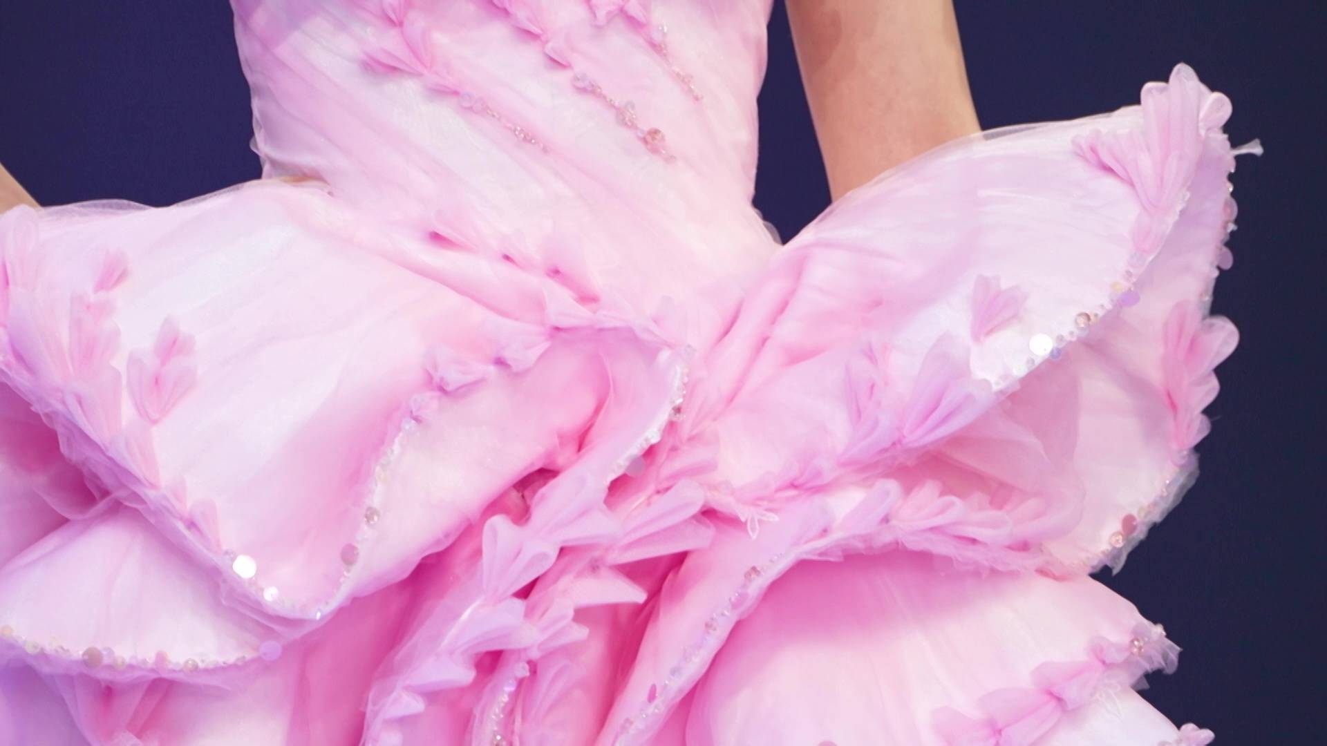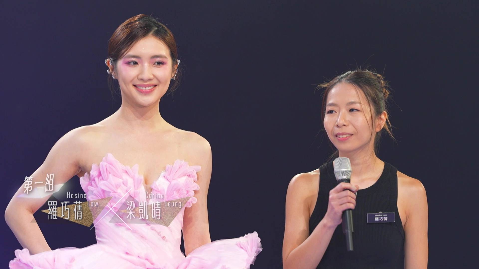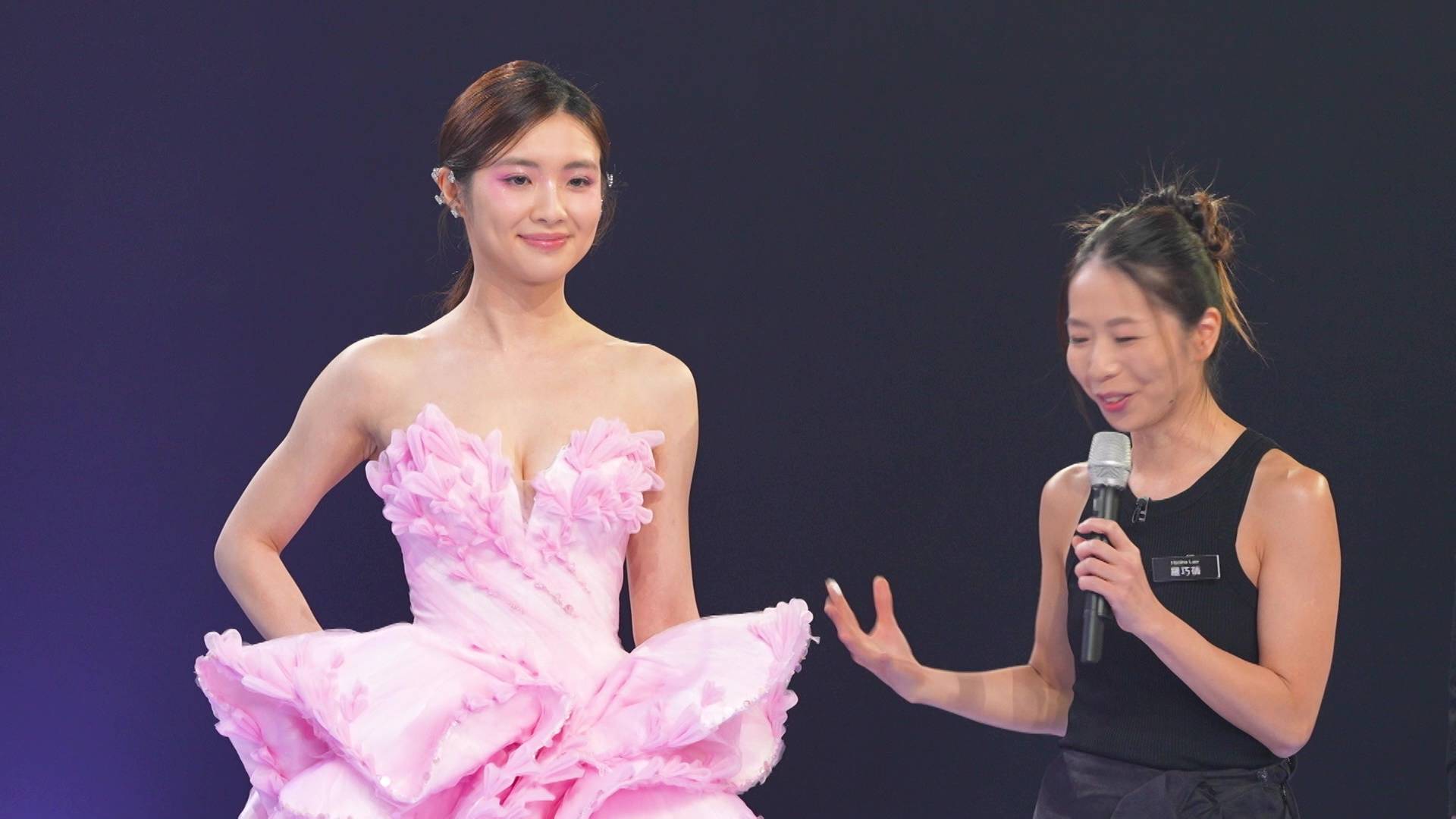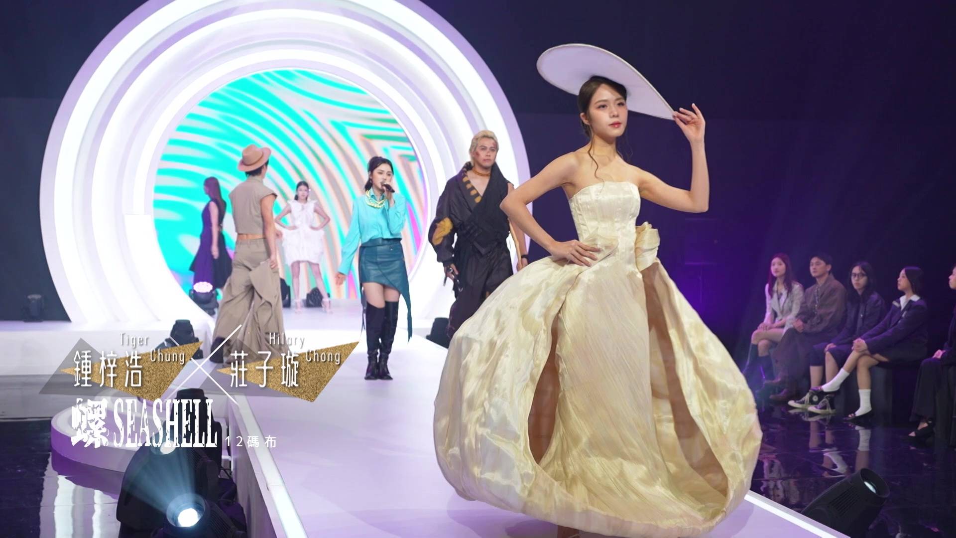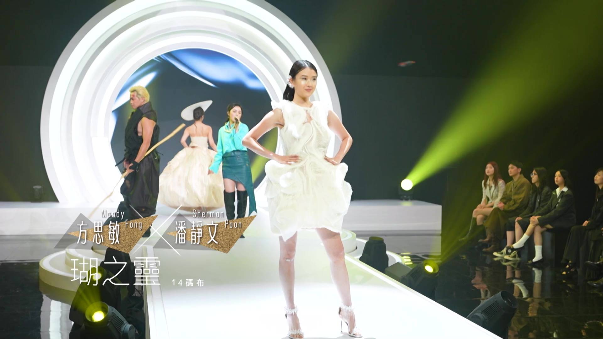 另一邊廂,設計師羅巧蒨則抽到最多的16碼布,與模特兒梁凱晴聯手打造「Bow Romance」造型,形成強烈對比。羅巧蒨巧妙地將大量布料轉化為充滿層次感的粉紅色少女風短裙,並以大型蝴蝶結作點綴,突顯梁凱晴的修長美腿。這個甜美設計深得評審歡心,樂基兒大讚:「你咁多 Texture 同 layer 可以整到短裙好 creative,I really like pink。」連視帝陳豪亦表示支持:「咁多碼布要將佢轉成短裙,我覺得係一個好好嘅設計,白色同埋粉紅色出嚟嘅效果好好睇。」