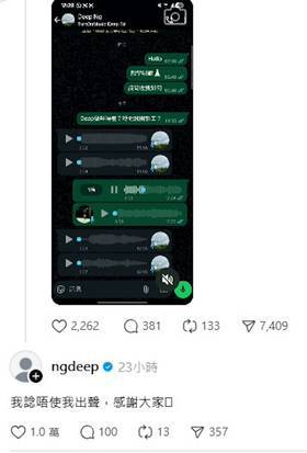 面對YouTuber的公開挑機,吳浩康選擇了親自回應,而且方式相當直接。他先後錄製了兩段語音訊息給對方,第一段便單刀直入地問:「唔好意思,其實你係咪特登唱到唔啱音唔啱拍子?如果你係特登嘅,我覺得你做到喇,但如果你唔係特登嘅,咁你就要加油喇,因為你真係唔啱音同唔啱拍子。」在對方回覆後,吳浩康再傳來第二段語音,語氣依然有禮,更表示如果對方真心想學唱歌,他樂意教導:「如果你真係有心想學唱歌,我可以教你,但如果你只係想玩,咁就冇問題,你繼續玩啦。」