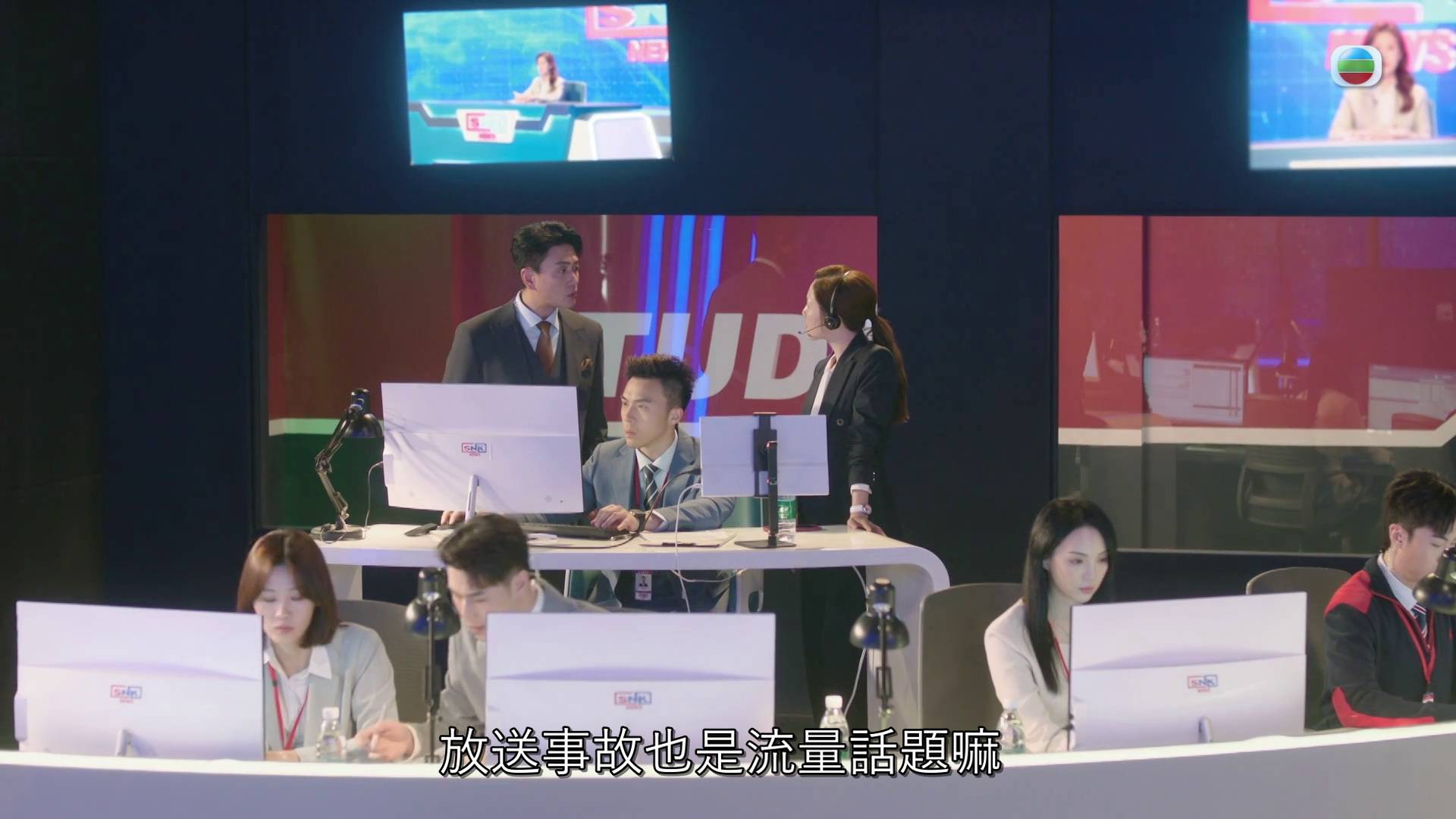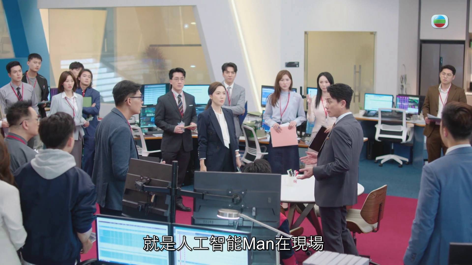 昨晚一集劇情中,SNK總監Kingston(黃宗澤飾)為求刺激公司股價,竟在未經同意下,利用科技灰色地帶推出「AI主播文慧心」及「AI主播梁景仁」,並聯同網紅唐芷瑤(陳曉華飾)在網上大帶風向。此舉隨即引爆一場真人與AI的終極對決,在西貢發現戰時炸彈的突發新聞現場,「AI主播文慧心」與真人Man姐正面交鋒。Man姐憑藉多年累積的採訪經驗、驚人記憶力及超強應變能力,無論在速度或準確度上都完全拋離AI主播,最終以絕對實力贏得漂亮一仗,再次證明人類的專業無可取代。
