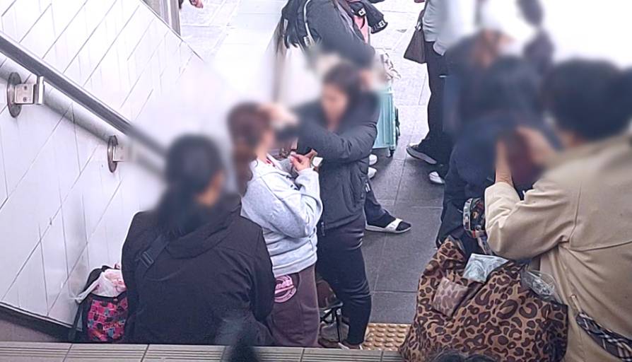 東張西望攝製隊實地拍攝發現,每逢周四中午開始,中環港鐵站通往IFC的樓梯便會出現大批外傭開檔做生意。現場所見大部分是菲律賓和印尼姐姐,她們兩人一組將整條樓梯私有化,無本生利公然經營美容服務。片段可見有紅衫婆婆除鞋除襪赤腳伸出右腳,對面女士幫她按摩小腿,地下還放有疑似按摩油。更有客人除剩底衫露出下腰做按摩,甚至有人袒胸露臂做推油,隨時走光。