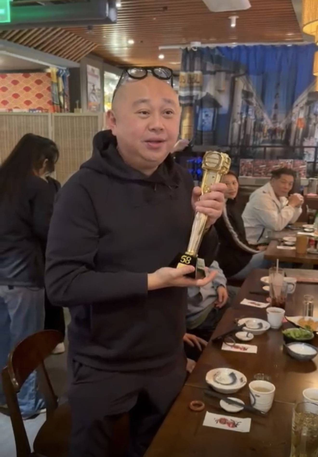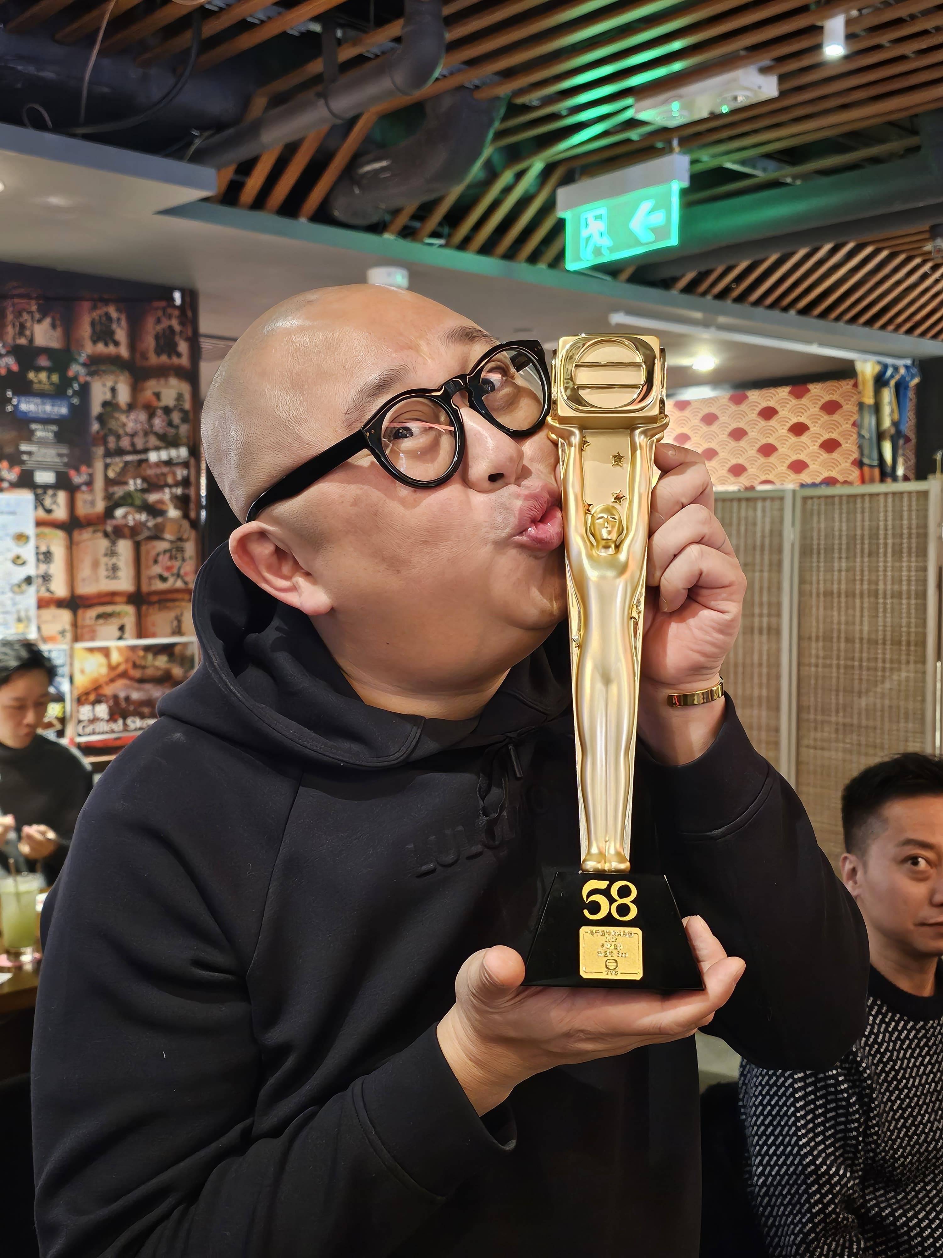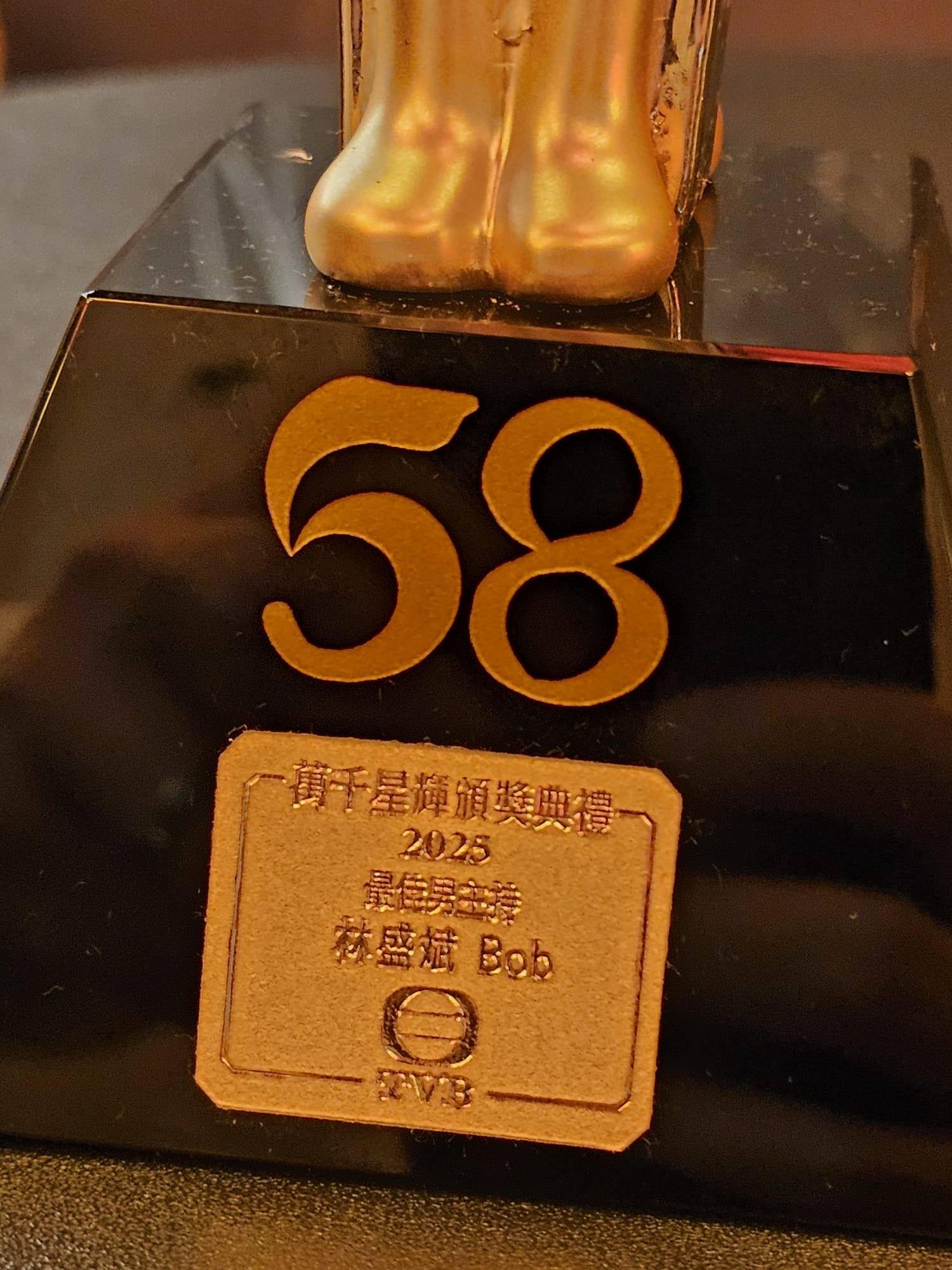 在去年1月23日晚為《中年好聲音》等節目舉辦的慶功宴上,全晚高潮莫過於大會向阿Bob補發「最佳男主持」的真‧獎座!當阿Bob看到刻有自己名字、得獎項目及「58」字樣的完整獎座時,立即笑得像個小孩,滿臉期待。他接過獎項後,即愛不釋手地從頭到尾摸勻,更興奮地拿著獎座與身旁的車婉婉開心「碰盃」。不過,有了上次「Bob爆獎」的經驗,他今次亦不忘搞笑自嘲:「要細細力吖」,小心翼翼的模樣與當晚的激動形成強烈對比,場面非常有趣。