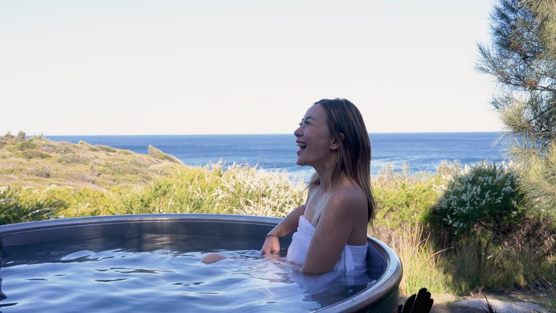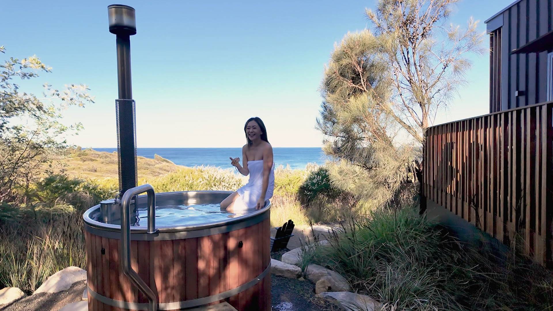 對於這次桑拿體驗,連見慣大場面的Christy都忍不住大讚,更在鏡頭前感嘆:「呢個係咪就係呢個世界最靚嘅桑拿?細細間桑拿,大大個海景!」除了桑拿,Christy入住的度假村同樣驚喜十足。她入住標榜綠色生態、獲獎無數的度假村Chain of Lagoons,每晚收費由$2,850至$3,980港元不等。套房不但面向塔斯曼海,房外更有私人溫泉,而且距離觀賞企鵝的沙灘極近,甚至偶爾有袋鼠經過作鄰居,猶如置身真正的世外桃源。