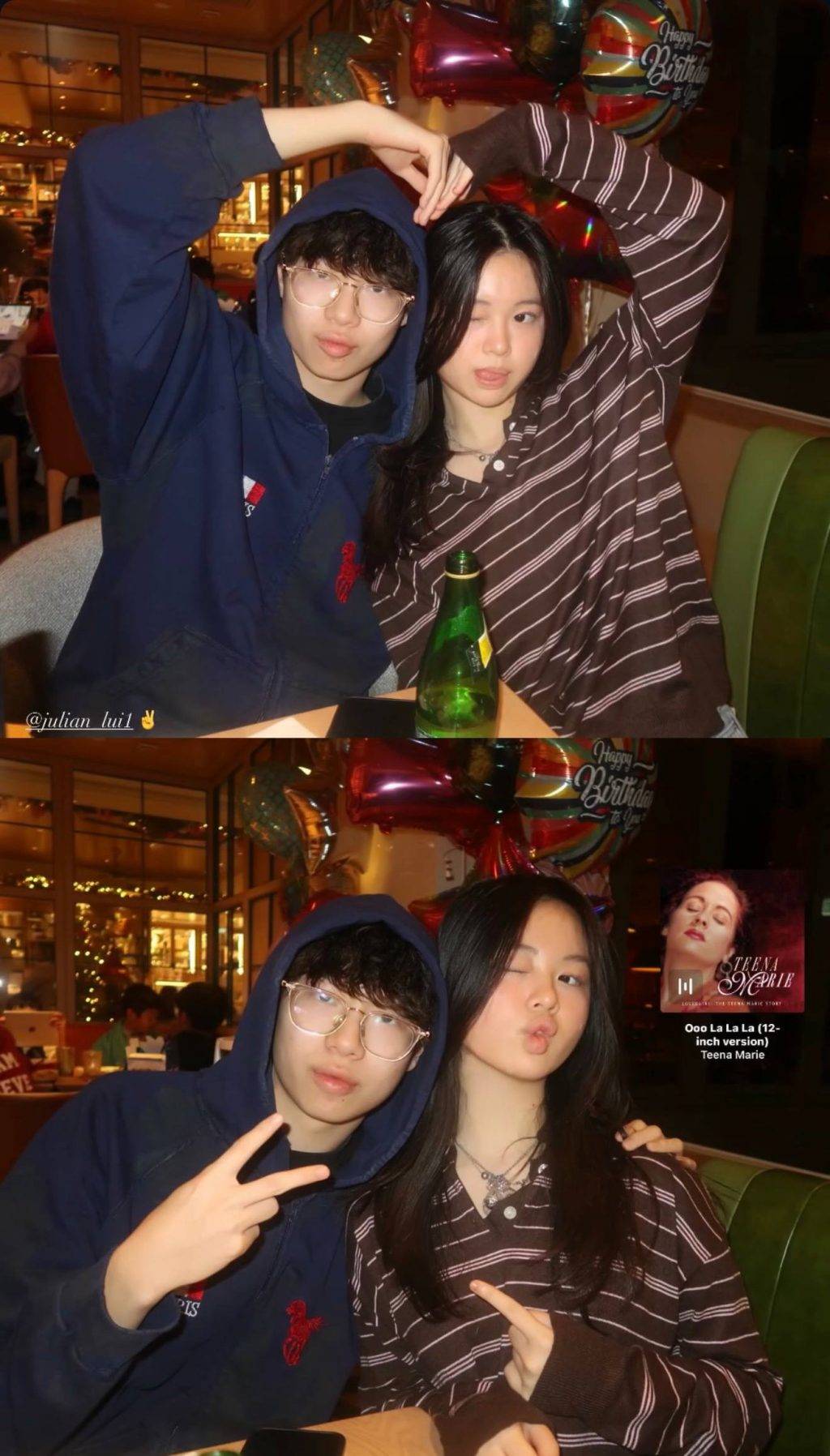 向來極力保護愛女私隱的王浩信和陳自瑤,近日被網民發現13歲女兒王靖喬的社交平台帳戶,更驚見她與男友的放閃照片頻繁曝光。這位星二代不但正面樣貌首度流出,更大方公開戀情,從聖誕節開始連環貼出與男友的親密合照,甚至將頭像換成兩人合照,錫面錫嘴相都毫不避忌,完全是熱戀中情侶的甜蜜模樣。