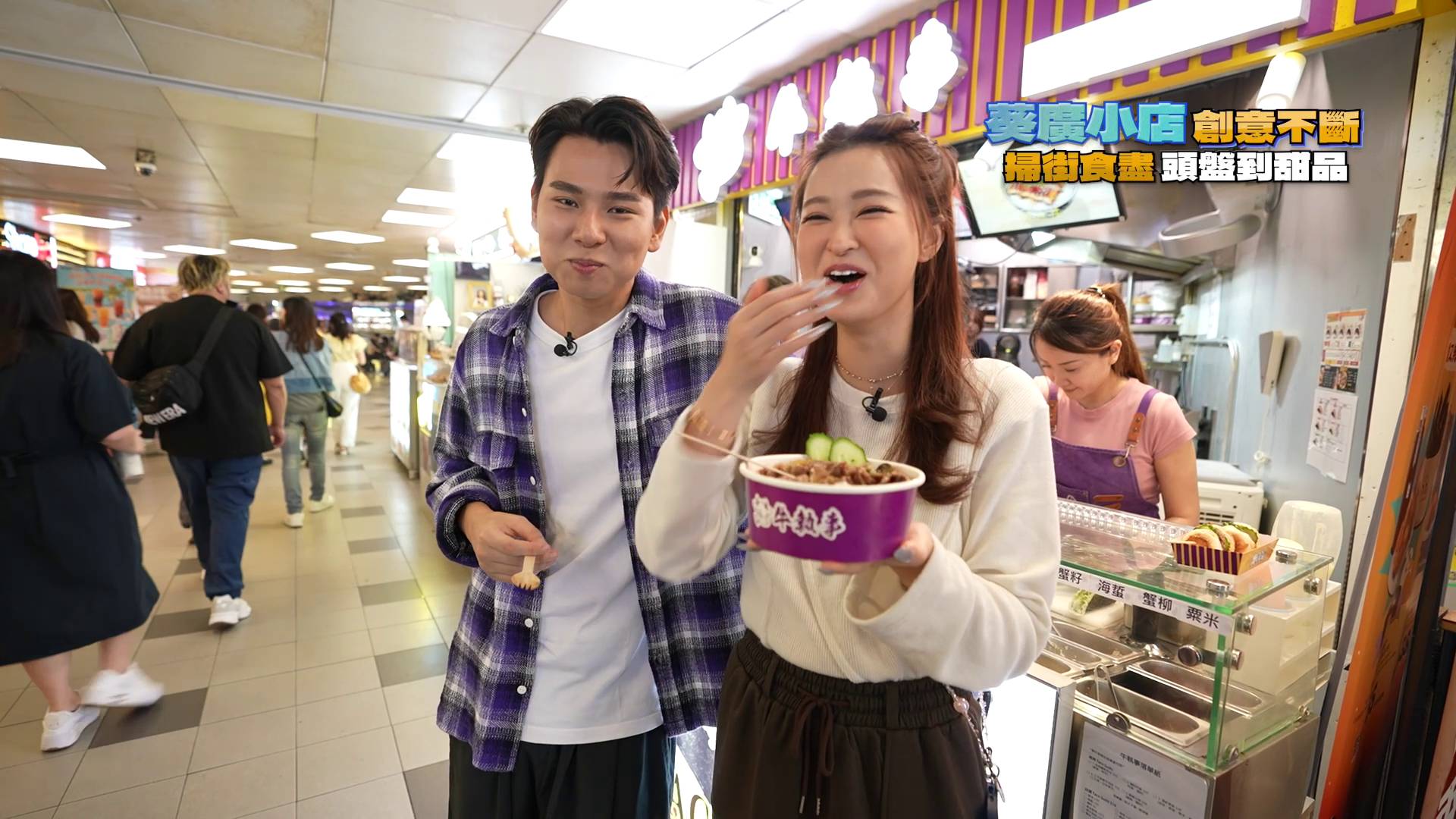 人氣高企的「掃街天堂」葵涌廣場又有新嘢食!節目《美食新聞報道》主持伍倩彤(Gillian)與蔡景行(行仔)將於3月6日晚帶大家直擊葵廣,發掘多款特色小食。期間二人互動甜蜜,行仔更上演「你一啖、我一啖」戲碼,究竟他講了甚麼情話,氹得Gillian心花怒放?