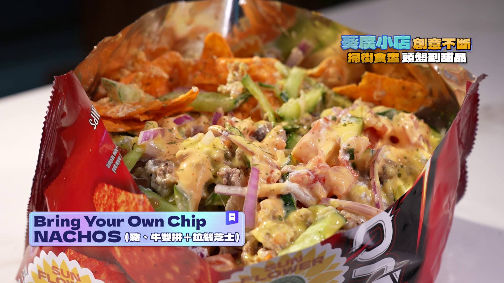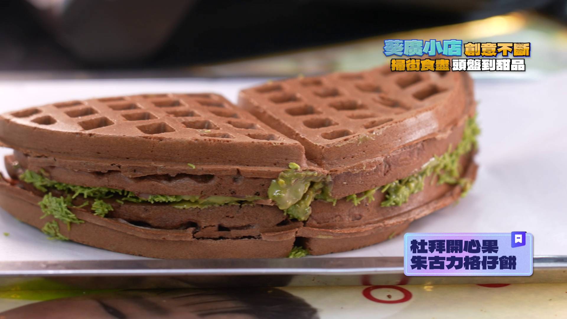 二人首站光顧一間甜品屋,Gillian一眼便被近期大熱的「迪拜開心果朱古力格仔餅」吸引。她興奮解釋:「其實迪拜開心果朱古力都出咗一段時間,之前食嗰啲都係劣質版,呢款滿滿嘅開心果餡,望落好吸引。」試食後,Gillian大讚格仔餅鬆軟且甜度適中,更能嚐到開心果粒及沾滿醬料的麵包絲,笑言終於一解之前吃到「劣質貨」的烏氣。接著他們體驗了新奇的「Bring your own chips」,客人可自攜零食,由店家加入自家醬料及配菜,Gillian試後大讚:「佢嘅配料都好豐富,有青瓜、洋蔥、蕃茄同幾款肉可以揀。呢款零食 mix 咗之後,係別有一番風味。」