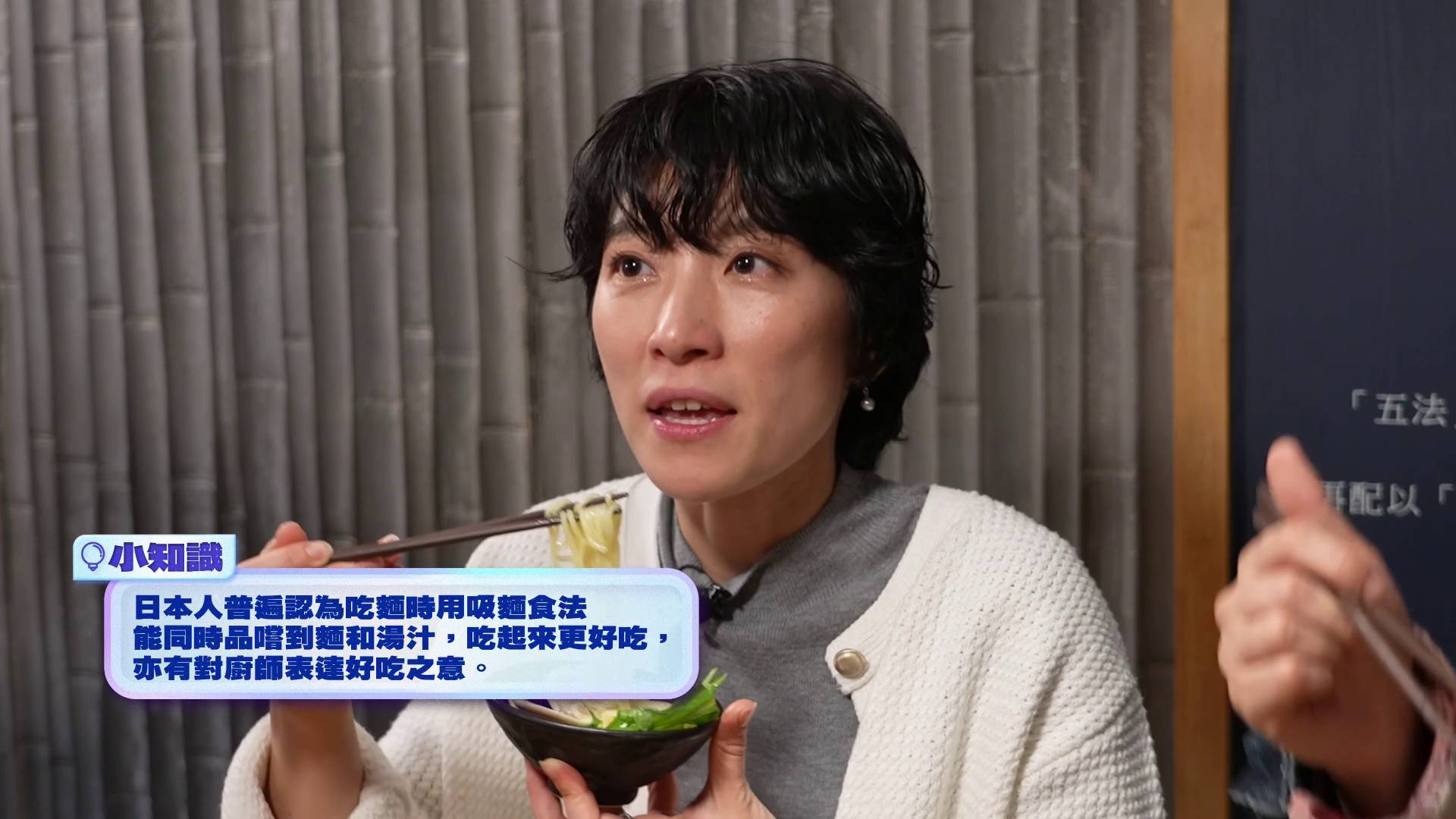 本集最大的亮點,莫過於靜香親身教授的日本拉麵禮儀。她向行仔解釋,吃麵時發出「雪雪」的啜食聲,是向師傅表達「拉麵非常好吃」的信號,是一種讚賞和尊重的表現。這個文化知識,對於習慣安靜用餐的香港人來說,無疑是一大衝擊。不過靜香亦補充,這個「潛規則」僅限於吃麵,喝湯時則不應發出聲音,她提醒:「食麵可以有聲,飲湯就唔好喇。」這個有趣的文化分享,讓觀眾對日本拉麵文化有了更深入的了解。