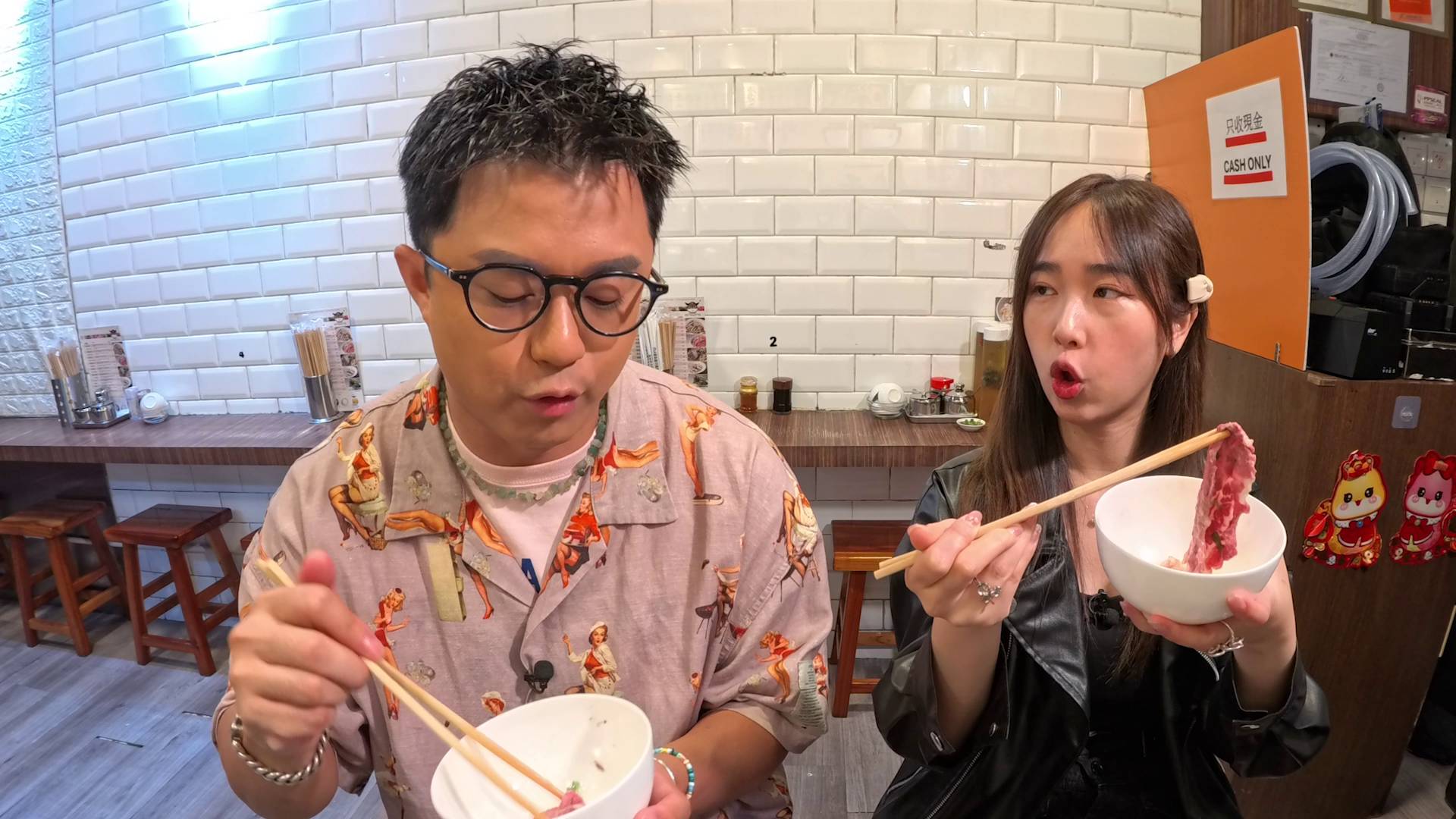 面對米芝蓮廚師的加持,店主亮哥亦豪氣解釋其經營理念,強調只賣新鮮牛腩,絕不賣隔夜貨。他霸氣表示:「貨量有限又唔會賣隔夜肉,所以賣晒寧願閂舖,貨唔新鮮啲客唔會嚟。」亮哥更即場解構各種刁鑽部位,指出「崩沙腩」即蝴蝶腩,一隻牛只能做到8至10碗;而最難得的「挽手腩」則是牛前手與牛胸之間的極品靚肉,肉味極濃,只需輕輕灼熟便能嚐到其鮮甜味,連見慣大場面的暉哥試食後都讚不絕口。