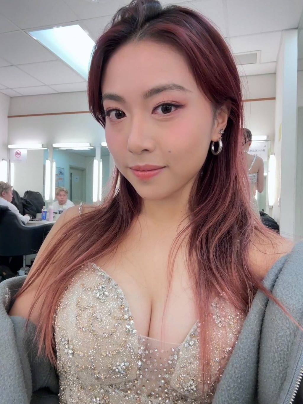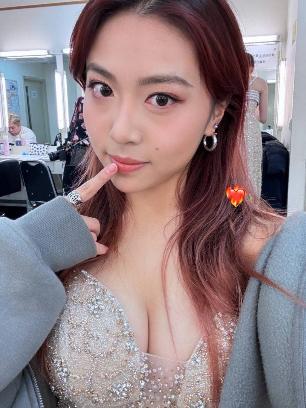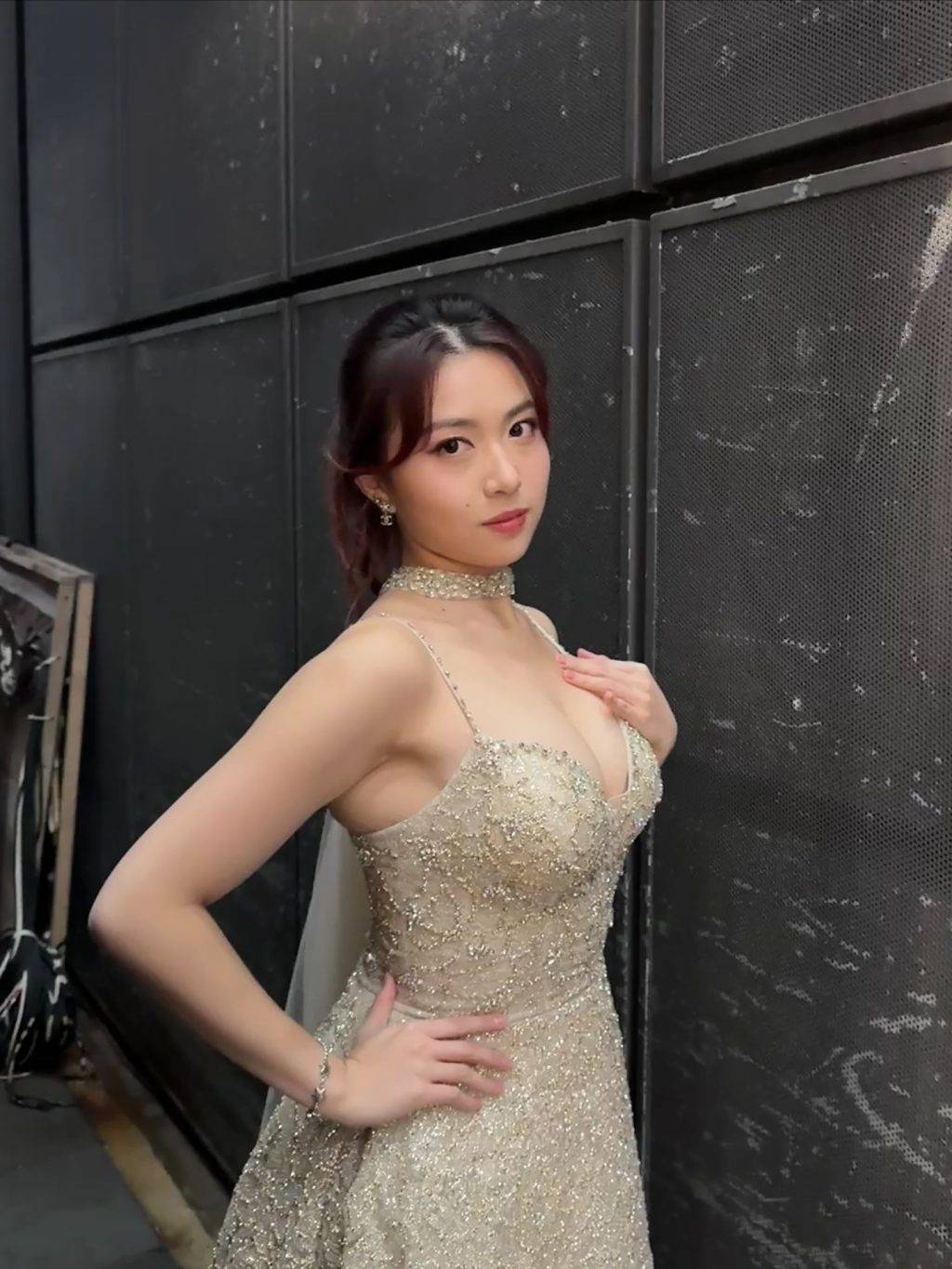 同樣來自《聲秀》的周智敏當晚選擇以金色深V晚裝上陣,性感造型同樣吸引不少目光。2005年出生的她現於香港浸會大學就讀流行音樂系,今年參加《聲秀》成功入圍8強。Emily在社交平台上分享當晚造型時坦言「呢件禮服有啲令人唔敢直視」,更透露這是她第一次參與台慶便意外中獎,顯得相當興奮。金色禮服配合深V設計,展現出她的青春活力和自信魅力。