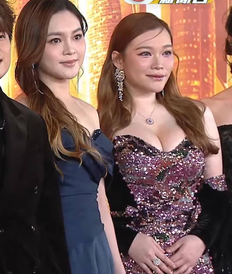 無綫台慶紅地氈向來是女藝人們的美麗戰場,今年《聲夢傳奇》和《聲秀》的小花們首次集體亮相,成功搶盡風頭。當中20歲的《聲秀》學員陳卓怡以白色低胸晚裝震撼全場,豐滿上圍配合黑色束帶設計,令她瞬間成為全晚最搶鏡的焦點。而《聲夢傳奇》的鍾柔美和詹天文同樣以性感造型登場,展現出新生代女藝人的青春魅力,網民紛紛截圖討論她們的驚艷表現。
