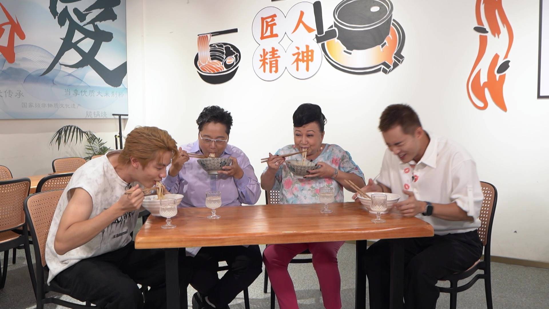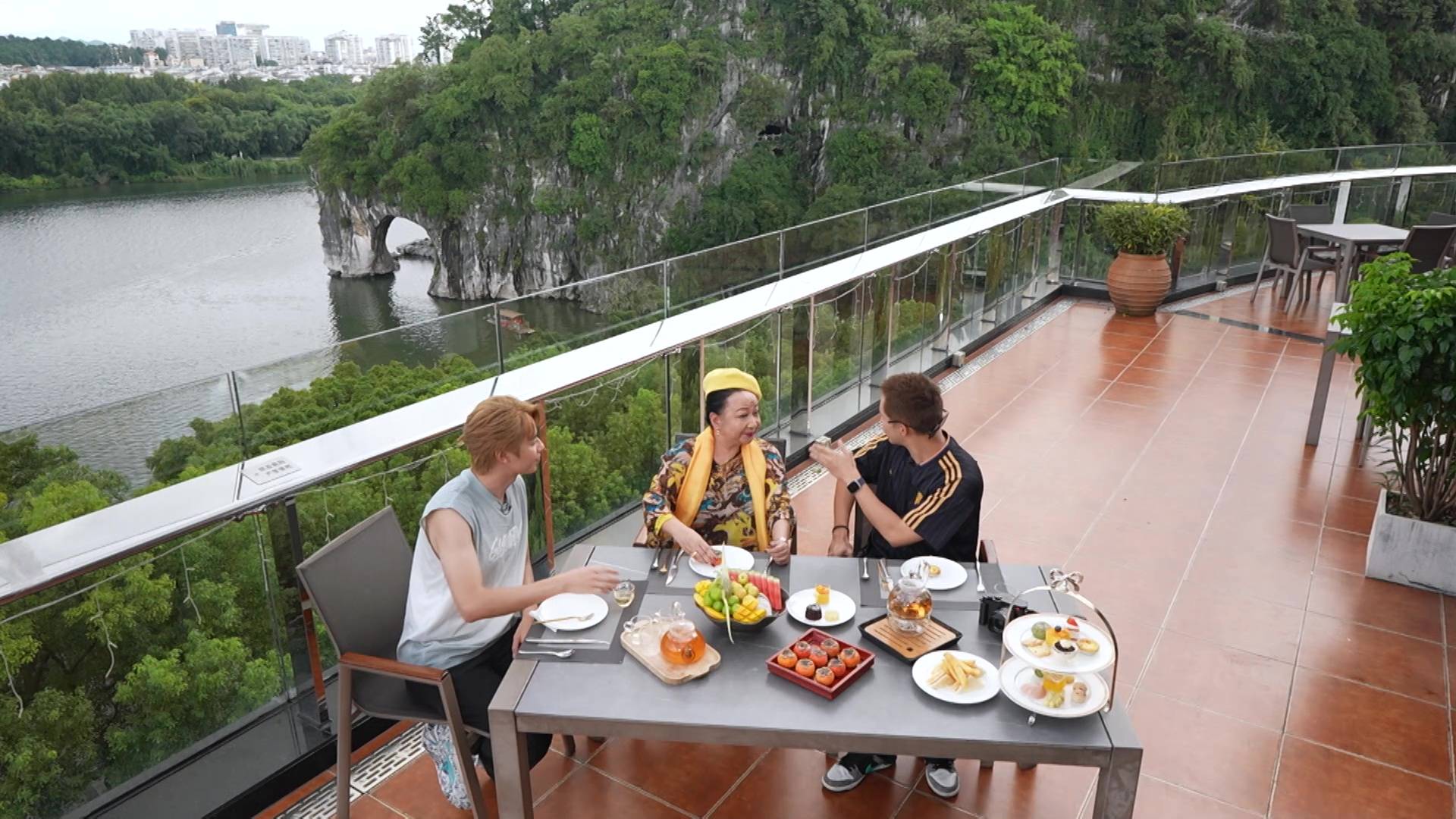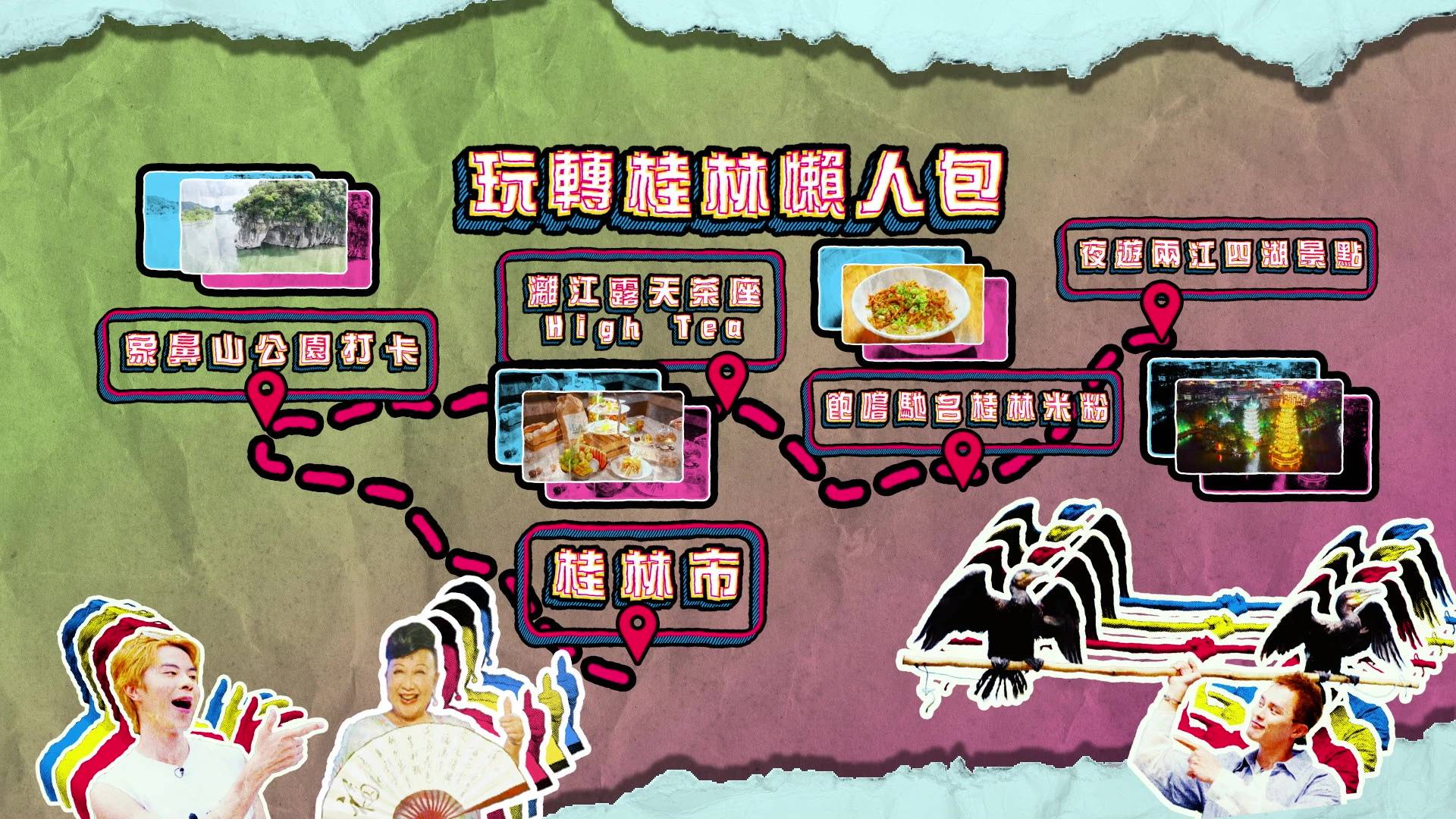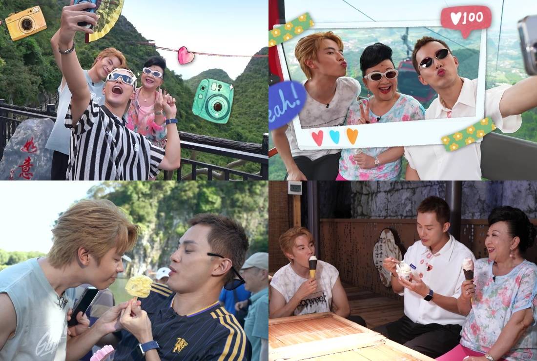 在今晚播出的首集,何廣沛與林正峰便急不及待帶「皇太后」家燕姐玩轉桂林。三人第一站就去到地標象鼻山,更在酒店露天茶座對著靚景享受High tea,瘋狂打卡。其後品嚐地道桂林米粉時,更上演搞笑一幕!原來地道食法要食到「雪雪聲」,何廣沛與林正峰即場「鬥雪」,鬥快將米粉吸入口,結果林正峰一時心急竟然「濁親」,引得全場工作人員爆笑,場面相當狼狽又搞笑。