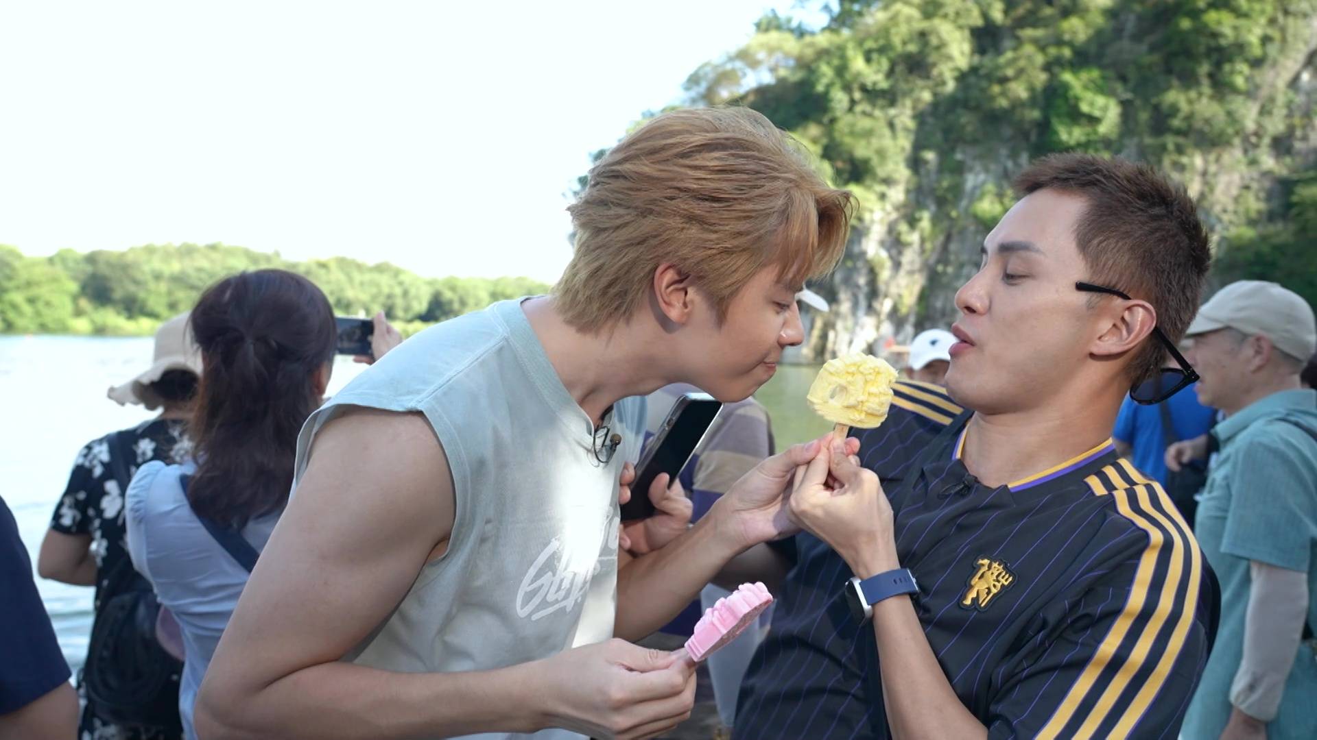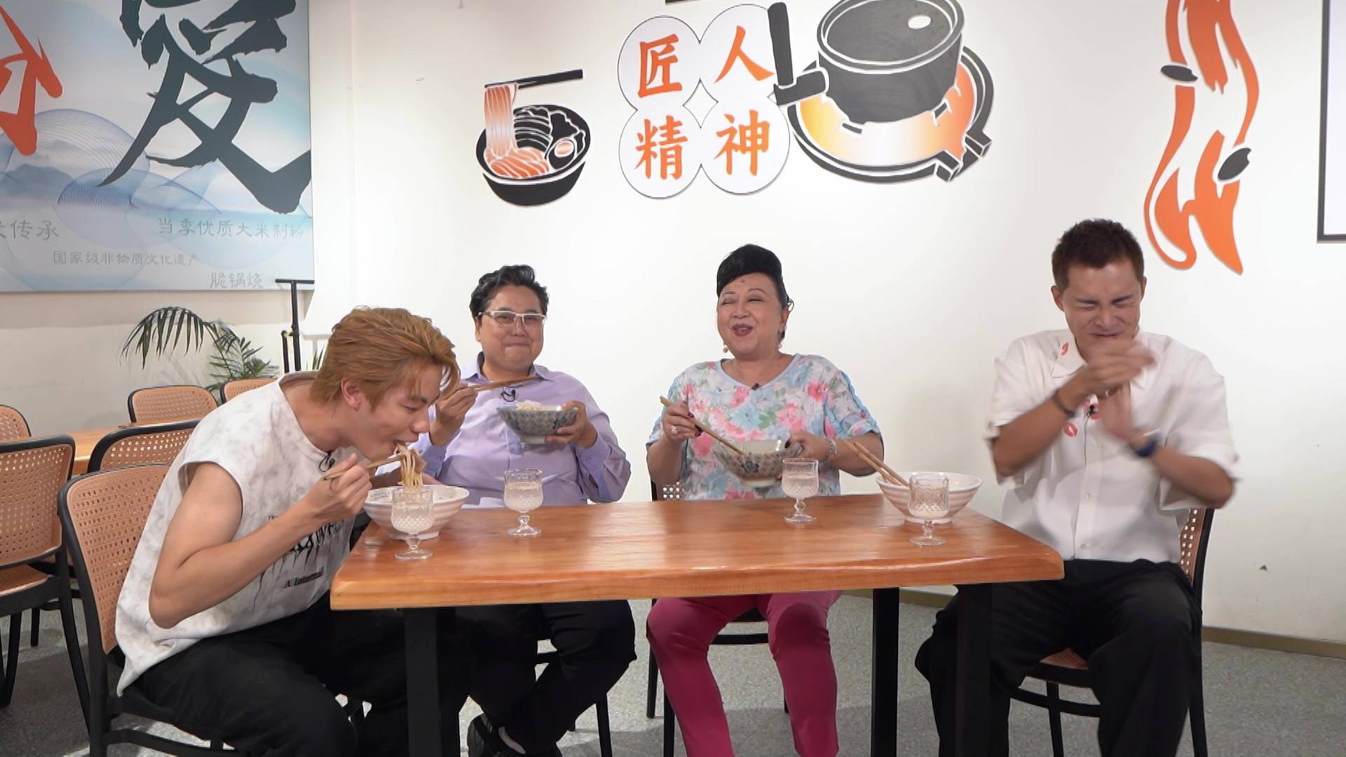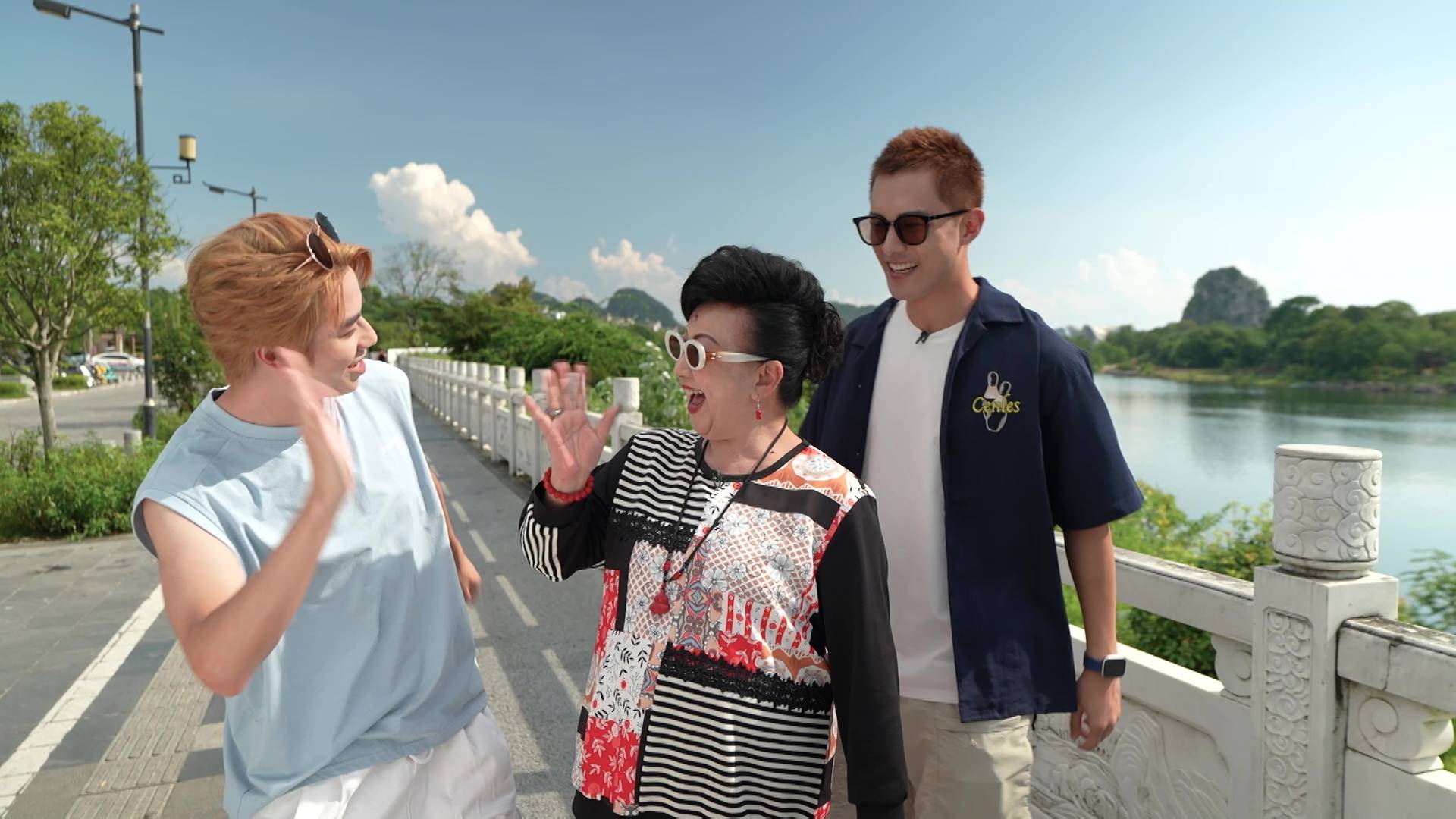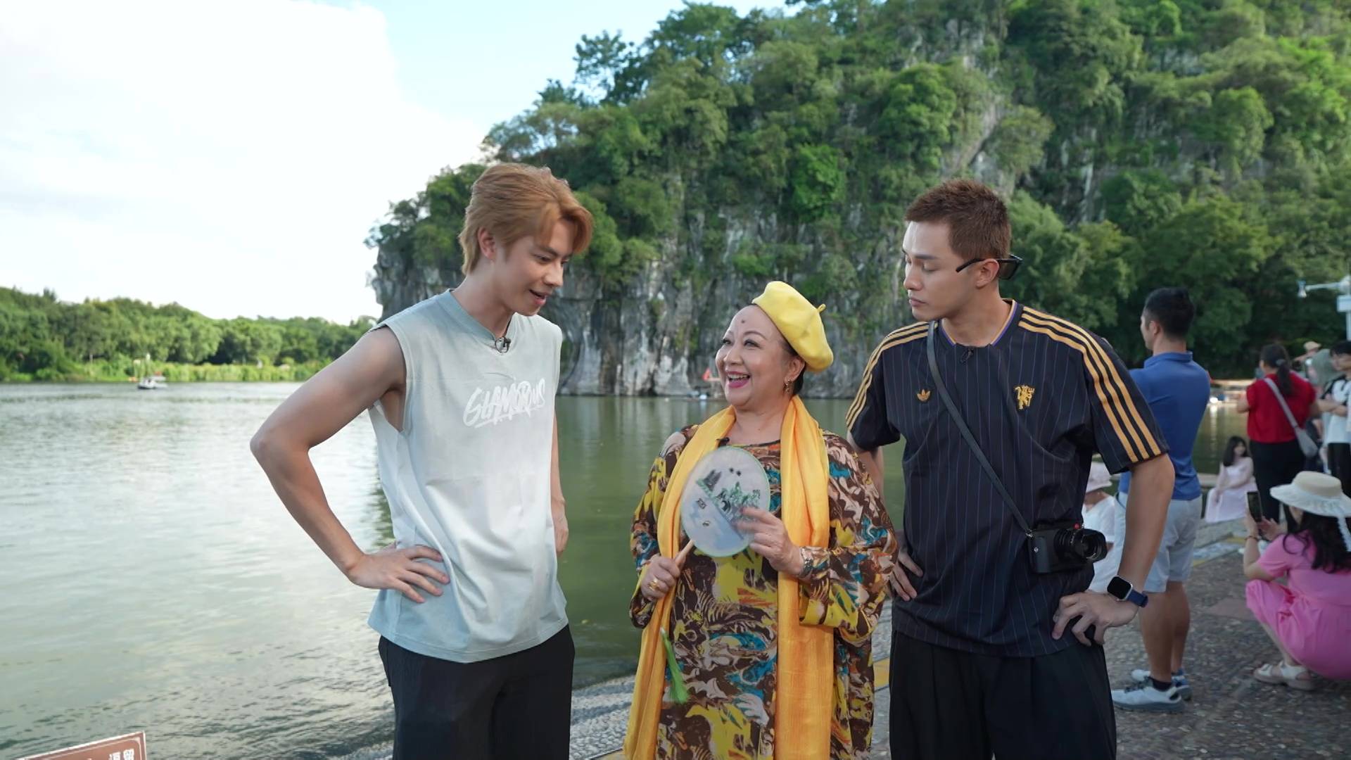 在今晚播出的首集,何廣沛與林正峰便急不及待帶「皇太后」家燕姐玩轉桂林。三人第一站就去到地標象鼻山,更在酒店露天茶座對著靚景享受High tea,瘋狂打卡。其後品嚐地道桂林米粉時,更上演搞笑一幕!原來地道食法要食到「雪雪聲」,何廣沛與林正峰即場「鬥雪」,鬥快將米粉吸入口,結果林正峰一時心急竟然「濁親」,引得全場工作人員爆笑,場面相當狼狽又搞笑。