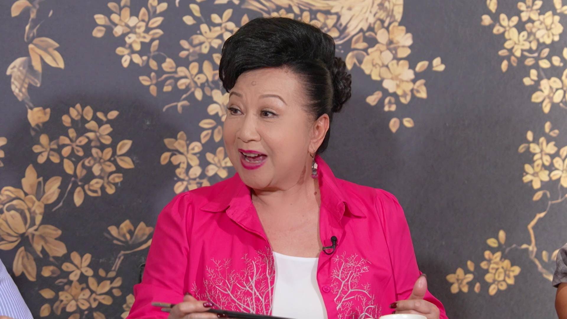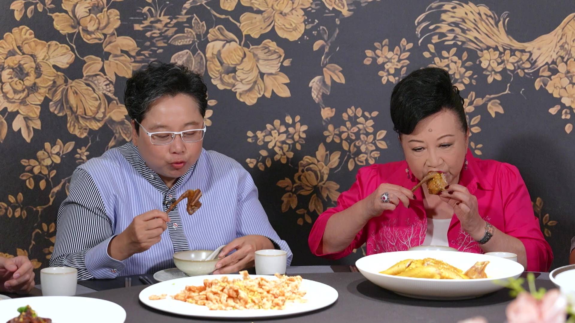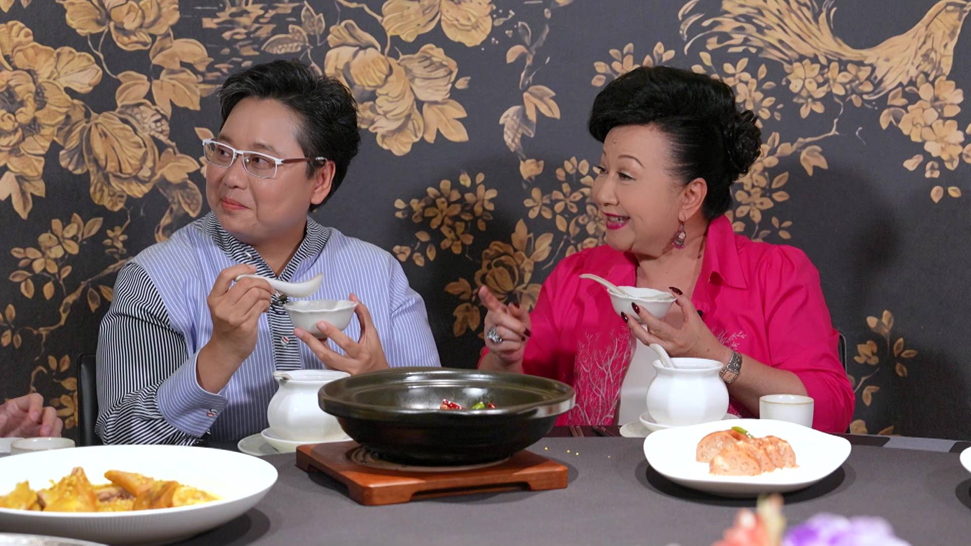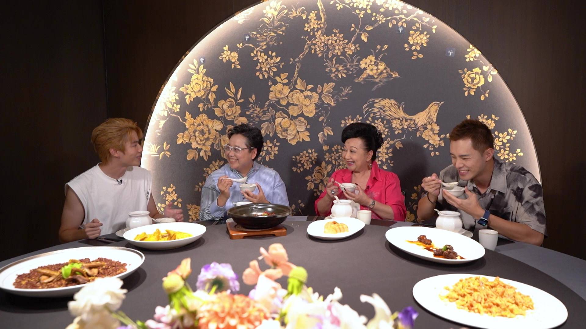 在品嚐豐盛的「桂花宴」期間,家燕姐嚐到一道酥炸灕江小河蝦時,立即母愛大發想起孫仔,大讚菜式健康:「呢個落咗桂花乾去炒,冇咁搶口又冇咁熱氣,小朋友最啱食,我孫仔最啱食!」言談間充滿溫馨。不過畫風一轉,家燕姐突然向林正峰送上「桂花加持」,語重心長地說:「峰峰,你食完呢個桂花你個人都會正氣啲㗎。」林正峰聞言一臉錯愕反問:「我以前唔夠正氣啊?」家燕姐隨即機智回應:「爭少少啦。」一來一回的對話盡顯她的轉數之快,亦為節目增添不少火花!