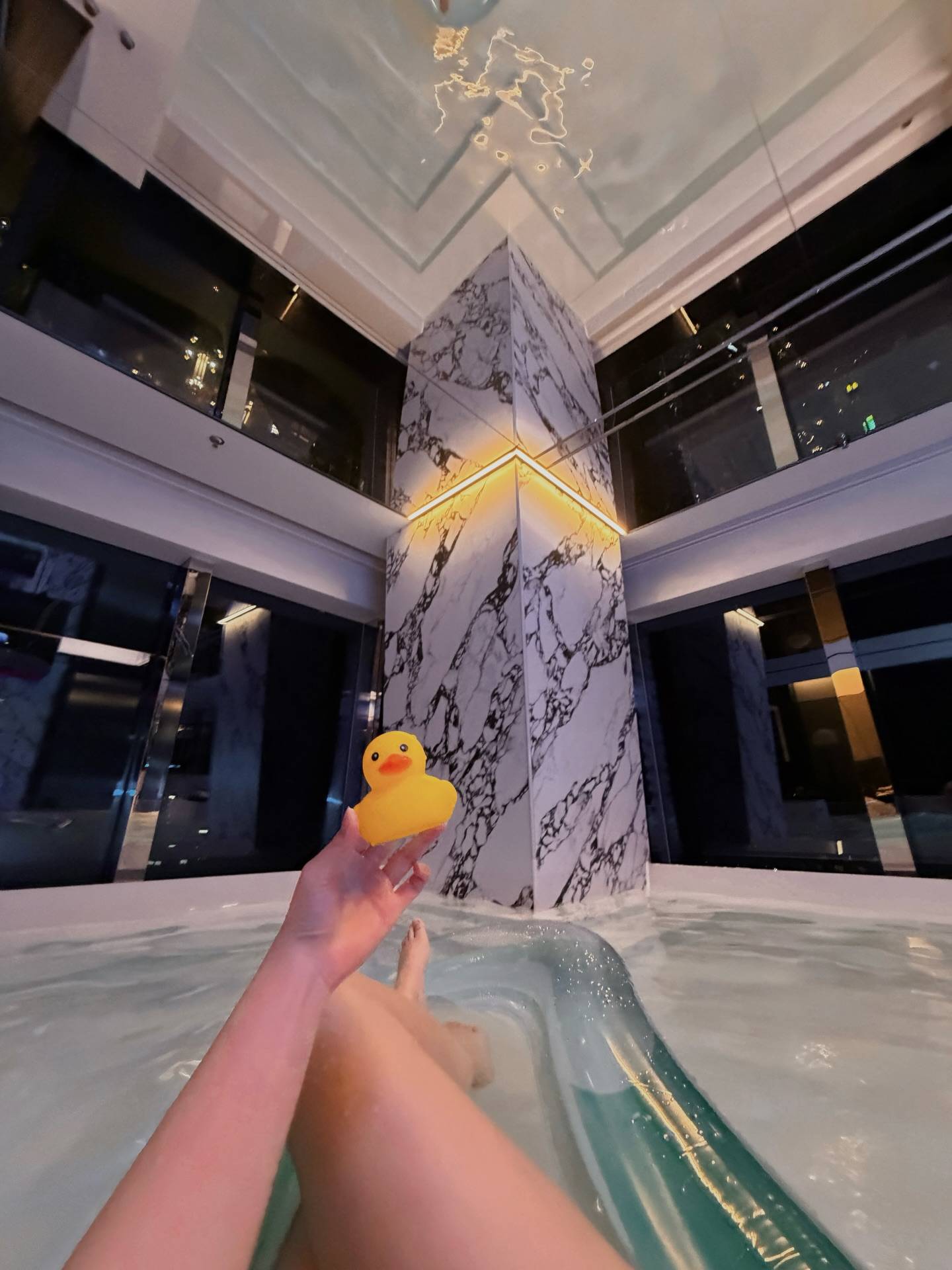 情人節剛過,34C女神陳欣茵就用一組震撼泳池照片引爆全網!離巢無綫轉型KOL的她,昨日(15日)在社交媒體大派福利,身穿黑色泳衣在豪華酒店泳池中搔首弄姿,澎湃上圍一覽無遺,更與黃色小鴨玩得不亦樂乎。她更豪氣表示「住進了一家貴得讓人心痛、美得讓人心曠神怡的酒店」,房間內竟然還有私人泳池!這間神秘酒店到底有何來頭,為何成為網紅打卡聖地?