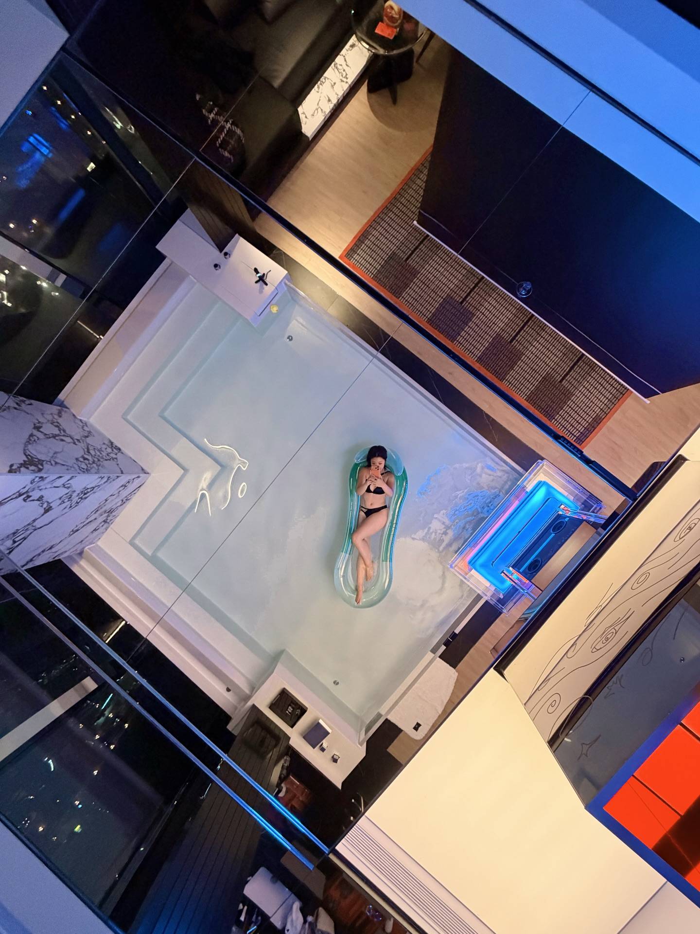 據了解陳茵欣入住的酒店是重慶iseya 世野高空酒店,酒店於2021年開幕,其中位於51樓的特別泳池套房,在網上不時可見到內地性感網紅到場浸水打卡表示到此一遊(圖片來源:小紅書)
