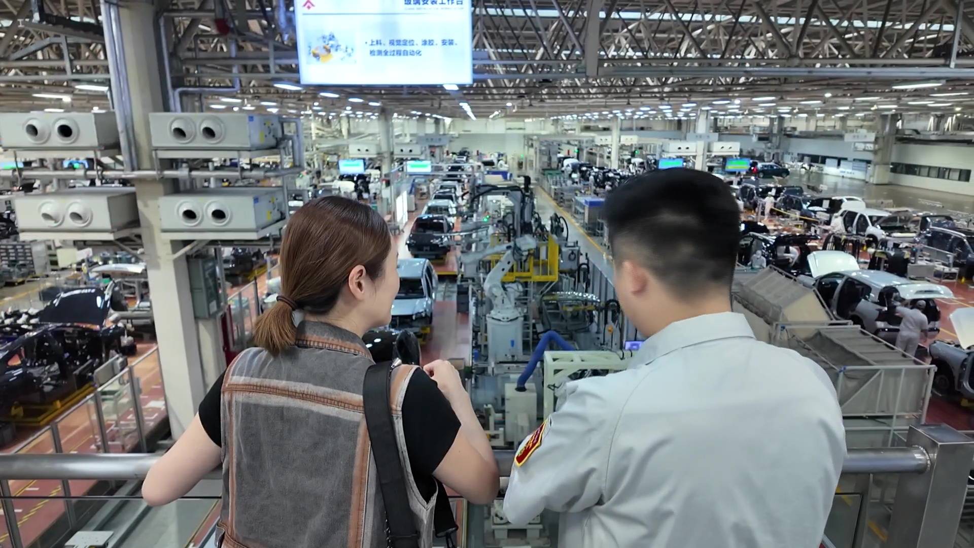 節目中,陳貝兒率先走入廣州龍頭車企廣汽埃安,直擊其高效的總装生產線。在總裝高級經理張自初的介紹下,觀眾得以窺見「53秒下線一輛整車」的驚人速度。這一切全靠廠內436台機械人高度協同作業,它們精準無誤地執行每一個組裝步驟,實現了高精度與高效率的完美結合。陳貝兒在現場目睹整個過程,對眼前由「製造」走向「智造」的技術躍進感到非常震撼,這條全自動化生產線不僅展示了生產力,更象徵著中國新能源汽車產業的強大實力。