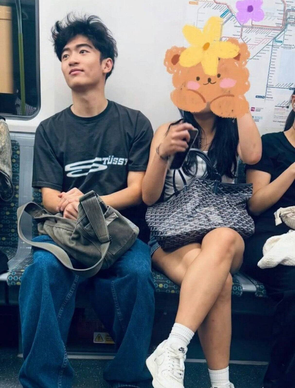 雖然看不見少女的全貌,但從她露出的下半張臉可見正燦爛地笑著,相信是位笑容甜美的陽光美女。她的打扮同樣搶眼,身穿白色小背心配牛仔短褲,露出健康小麥色肌膚和修長美腿,青春打扮中帶點健康小性感。有眼利網民更從她的手袋和鞋履品牌推測,少女家境應該不俗。偶遇者更大讚Lucas和這位女生外表出眾,內心純淨,氣場極佳。