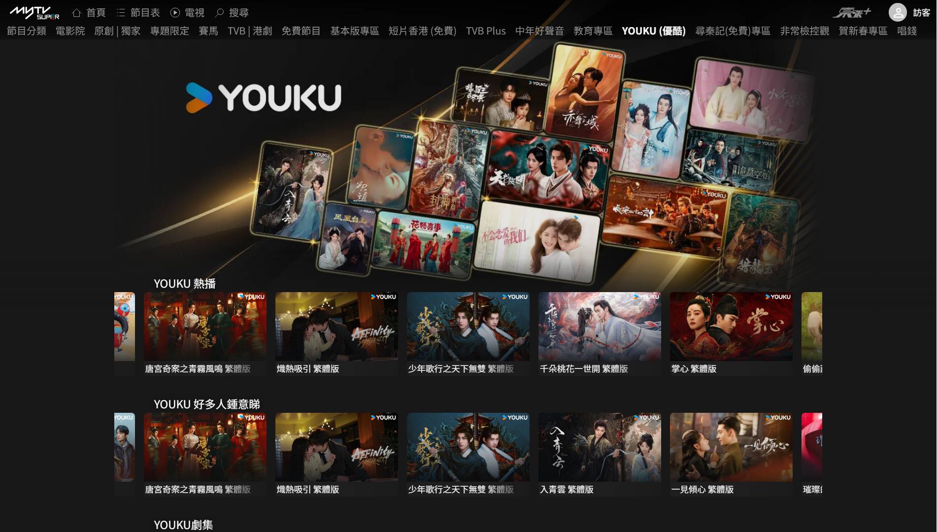 myTV SUPER今日正式宣佈,「YOUKU 專享內容組合」將登陸平台,為香港觀眾帶來一場華語視聽盛宴。是次合作規模空前,首階段便引入數千套涵蓋劇集、電影、綜藝、動畫及紀錄片等全方位內容。這次合作不僅是 myTV SUPER 內容庫的里程碑式擴充,更意味著將 YOUKU 在內地及亞洲地區最受歡迎的節目直接引入香港,實現資源互通的升級體驗,勢必大大豐富香港家庭的娛樂選擇,為本地串流市場投下重磅炸彈。