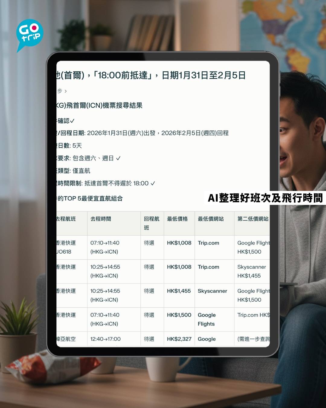 編輯試用後覺得很方便,AI整理好後一目了然,表格和旅伴一起討論班次和價錢很方便!