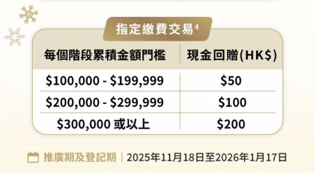 溫馨提提你!配合埋最新推出嘅「冬日Go賞」,各階段累積本地零售簽賬達指定金額,即享高達HK$200回贈,最高可獲額外HK$400回贈!