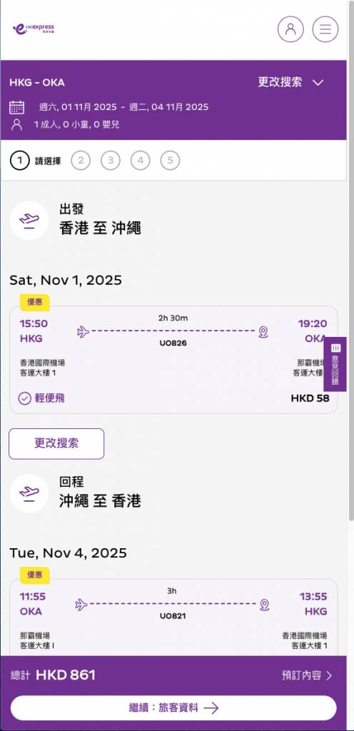 - 預訂網站:HK Express