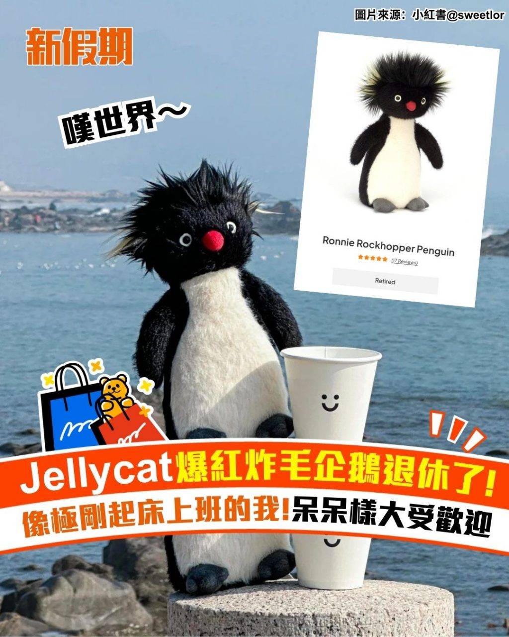最近Jellycat有一款公仔爆紅,就是爆炸頭造型的企鵝!呆呆的眼神,爆炸頭髮型,毛絨絨的身體,可愛的樣子捕獲了不少網民的心!大家都說企鵝的樣子就像剛起床的我,還有冬天遇上靜電的自己!有很多人都會帶這隻企鵝到處遊歷打卡,到底哪裡可以買到呢?但記者到Jellycat官網查詢,原來這隻企鵝已經退休了!即是官方已經停產,不過大家還可以在官方授權玩具店尋寶!