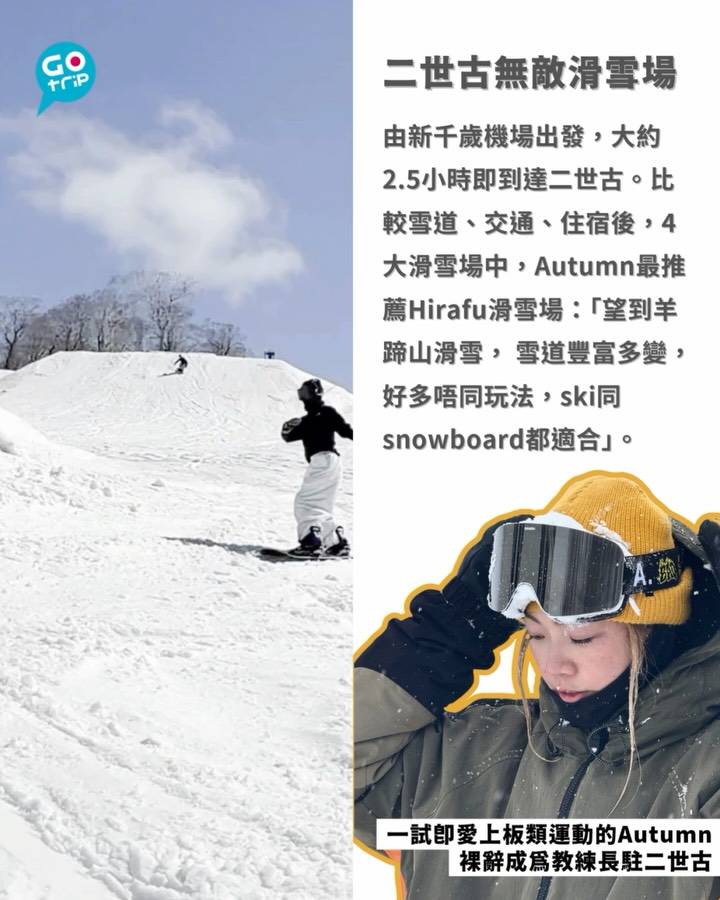 由新千歲機場出發,大約2.5小時到達二世古。4大滑雪場當中,比較雪道、交通、住宿之下,Autumn最推薦Hirafu滑雪場 @nisekograndhirafu:「望到羊蹄山滑雪, 雪道豐富多變,好多唔同玩法,ski同snowboard都適合」。