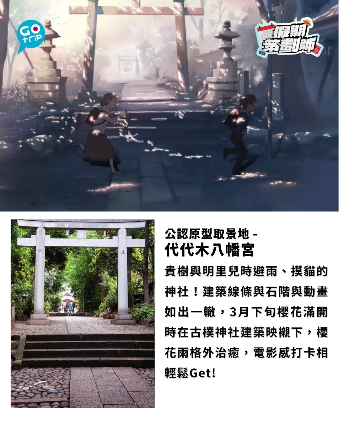 貴樹與明里兒時避雨、摸貓的神社!建築線條與石階與動畫如出一轍,3月下旬櫻花滿開時在古樸神社建築映襯下,櫻花雨格外治癒,電影感打卡相輕鬆Get!