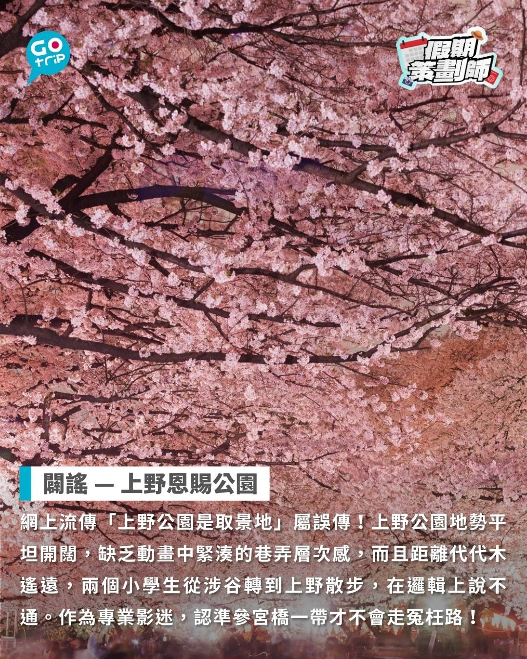 網上流傳「上野公園是取景地」屬誤傳!上野公園地勢平坦開闊,缺乏動畫中緊湊的巷弄層次感,而且距離代代木遙遠,兩個小學生從涉谷轉到上野散步,在邏輯上說不通。作為專業影迷,認準參宮橋一帶才不會走冤枉路!
