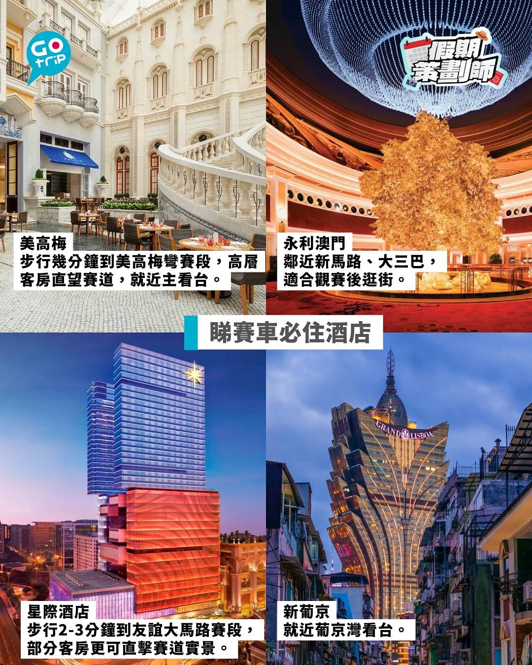 4日比賽期間,澳門交通都會比較塞車,建議選擇最近賽道或觀看台的酒店。