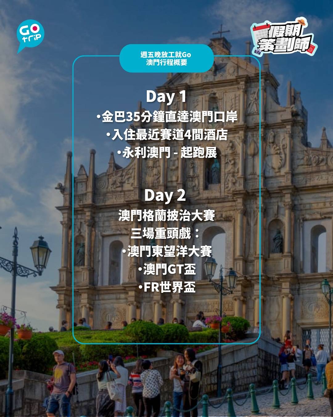 圖片來源:澳門格蘭披治大賽車、永利澳門、美高梅澳門、新葡京酒店、星際酒店、港珠澳大桥穿梭巴士資料或影片來源:Gotrip IG