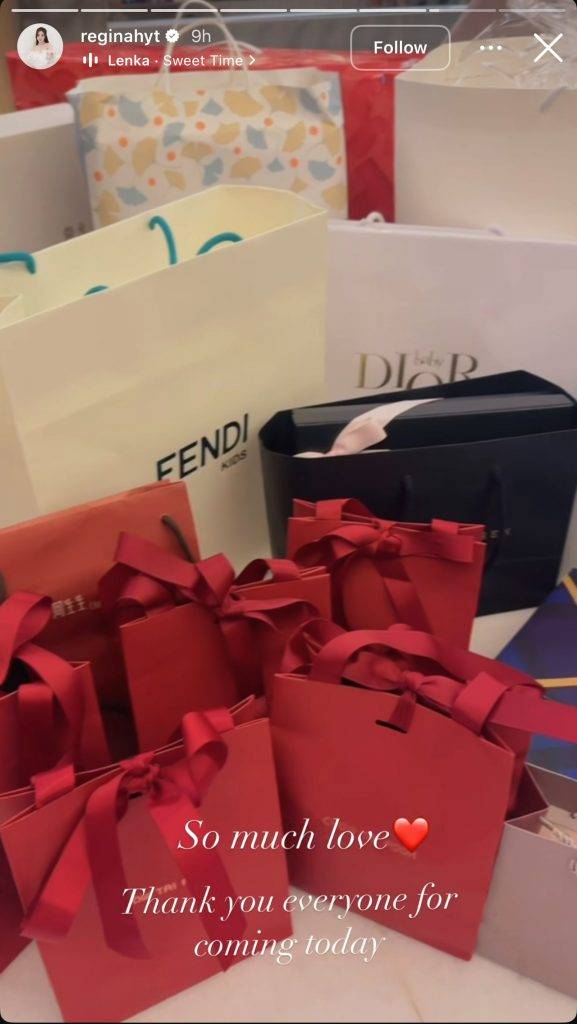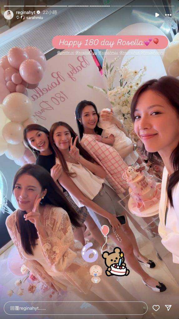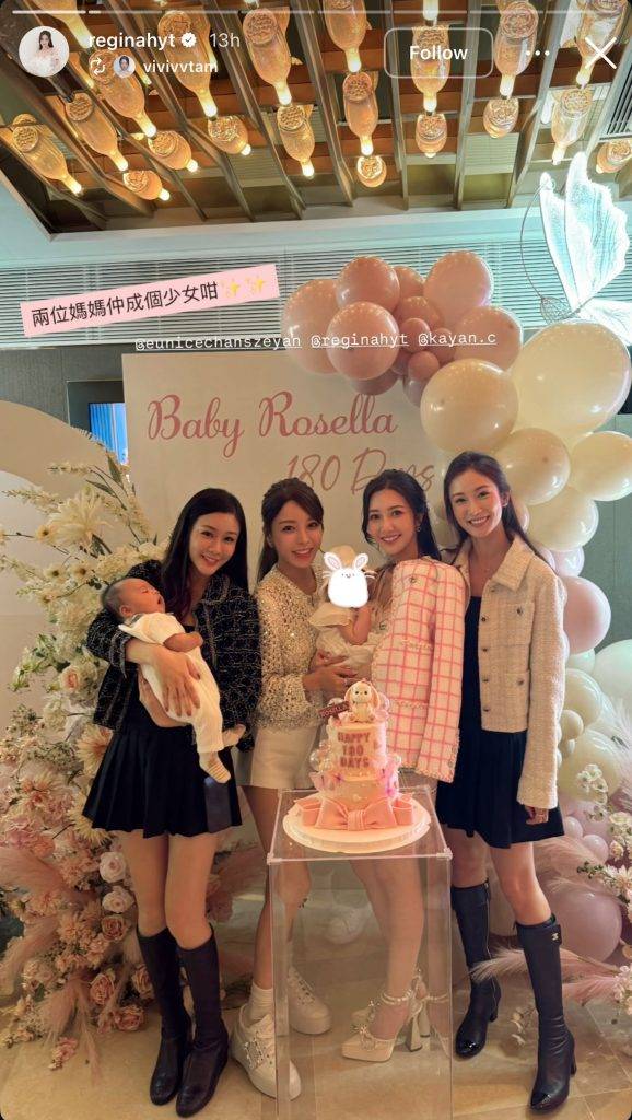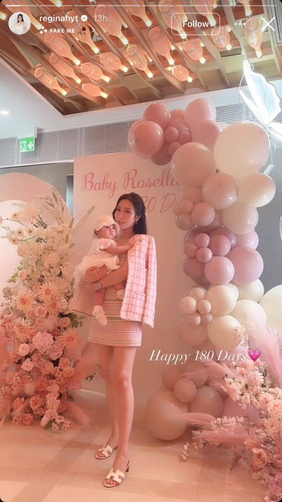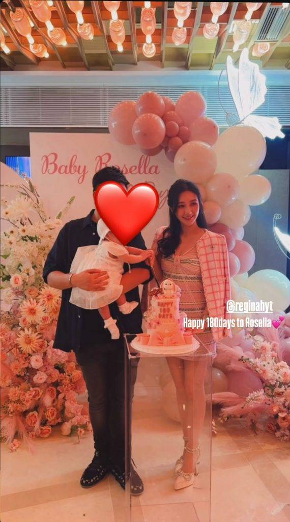 何依婷近日為女兒Rosella舉辦奢華百日宴。她在IG限時動態貼上180日宴的相片,場內佈置媲美何依婷結婚時的花海,二人齊齊穿上粉紅色的母女裝,還有一袋又一袋的名牌禮品做回禮,女兒Rosella絕對集萬千寵愛在一身。