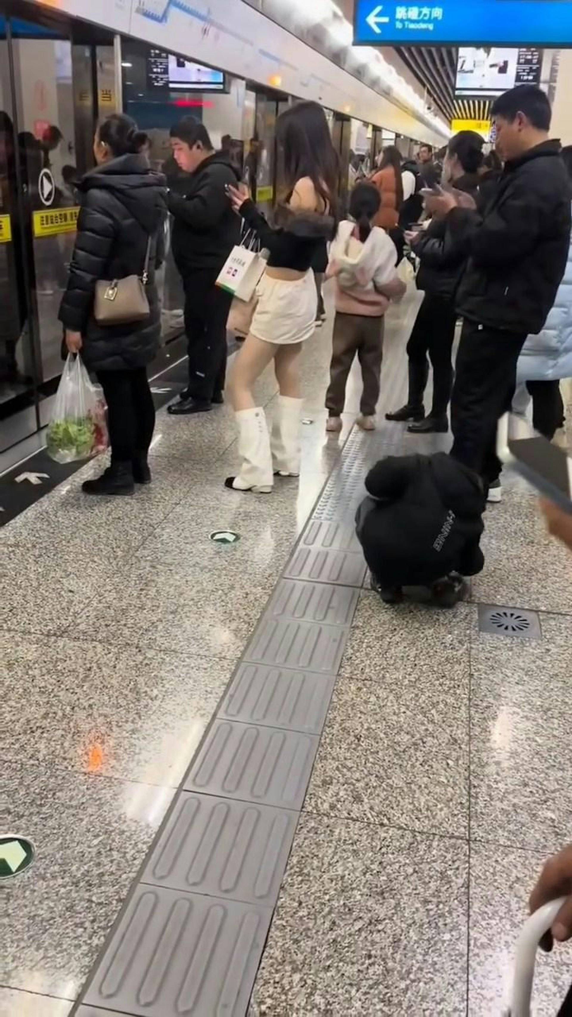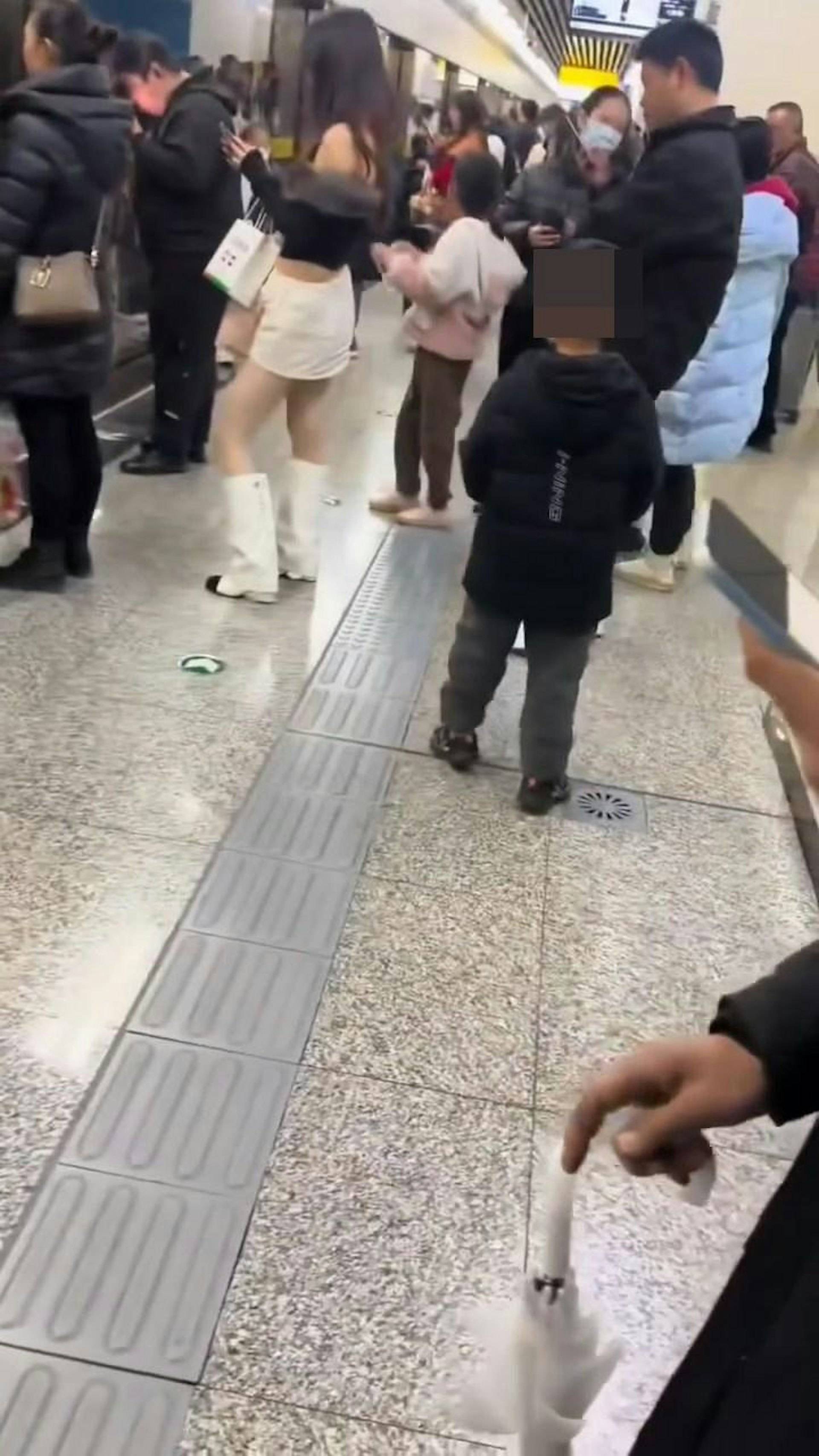 這段長達39秒的影片顯示,在內地某個地鐵月台上,一名穿著大露肩黑色上衣和白色超短裙的女生正在排隊等車。旁邊一名戴著口罩的小男童起初呆呆地望著女生下半身方向,隨後竟然蹲下身並「180度扭頭」往上望,疑似偷窺女生裙底。整個過程中,女生一直低頭使用手機,似乎完全沒有察覺到男童的不當行為。影片在Threads、Facebook及X等社交平台廣泛流傳,上載者更留言調侃「試圖探索來時路,感覺小孩哥有點想家了」。