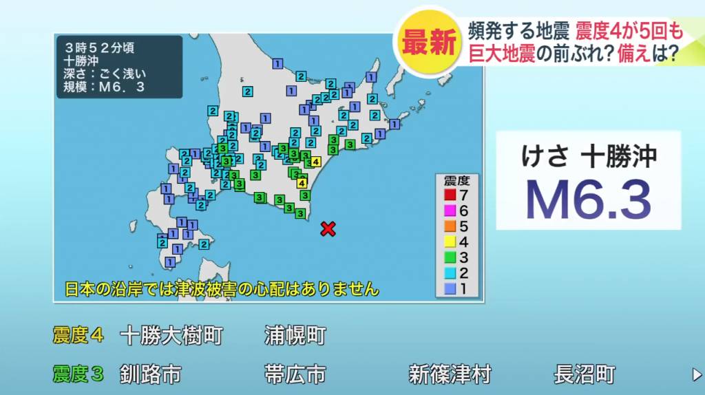北海道一周內4次地震 日本氣象廳罕有發出警告